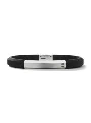 Crafted of rubber, this David Yurman bracelet is designed with a sterling silver placard detailed with an engraved emblem. A slide-clasp closure finishes this piece.