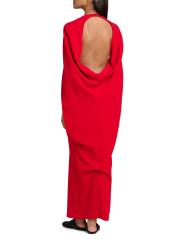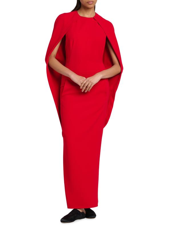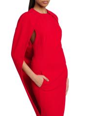 Alberta Ferretti’s elegant column dress is designed with a cape overlay across the shoulders, giving way to an open back. Crafted with stretch, it hugs the body from neck to hem.