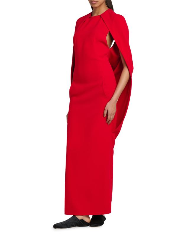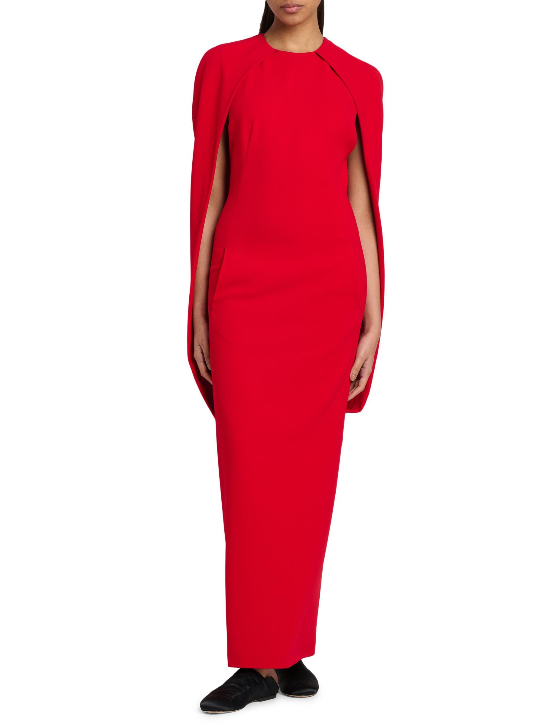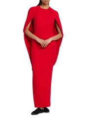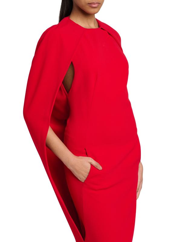 Alberta Ferretti’s elegant column dress is designed with a cape overlay across the shoulders, giving way to an open back. Crafted with stretch, it hugs the body from neck to hem.Jewel neck Cape sleeves Side seam pockets Open back Concealed side zip, back button closure 51% viscose/46% acetate/3% elastane Dry clean Imported