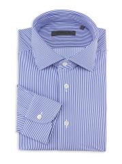 Crafted of a stretch fabric, this performance shirt from Corneliani highlights a classic pinstripe design. The style is designed with a spread collar, long sleeves, and a button-front closure.Spread collar Long sleeves, button barrel cuffs Button front closure 73% polyamide/27% elastane Dry clean Imported
