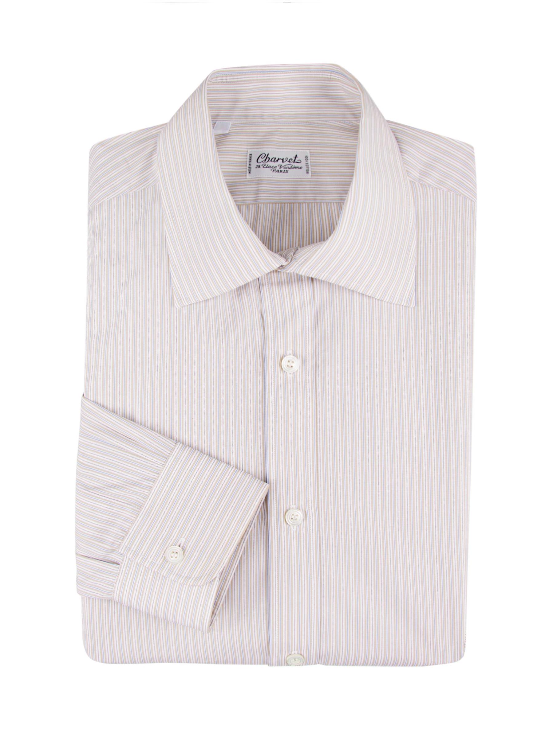 Made in France, this Charvet button-front shirt showcases subtle stripes.Spread collar Long sleeves button cuffs Shirttail hem Button front closure 100% Cotton Machine wash Made in France