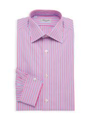 This Charvet dress shirt is crafted of crisp cotton chambray and styled with bold stripes.