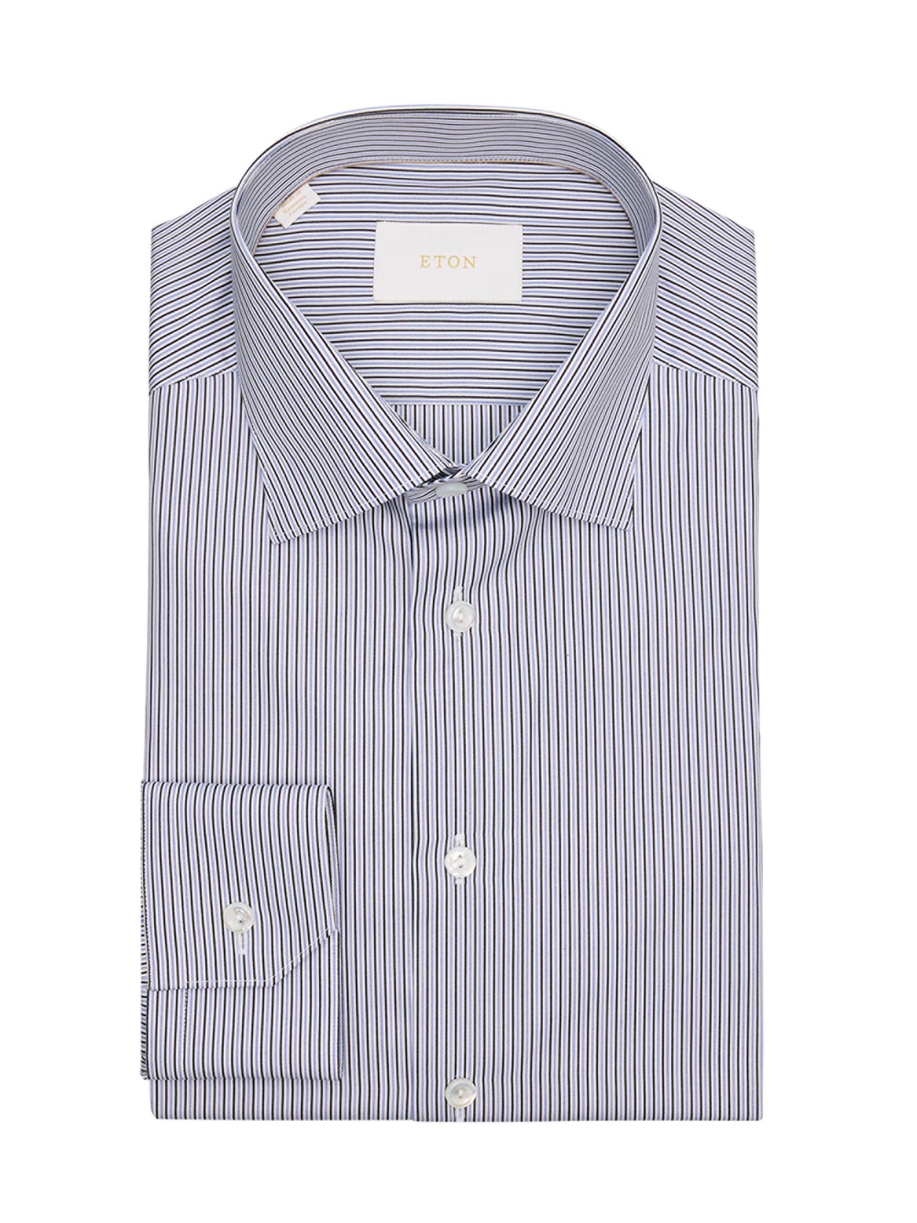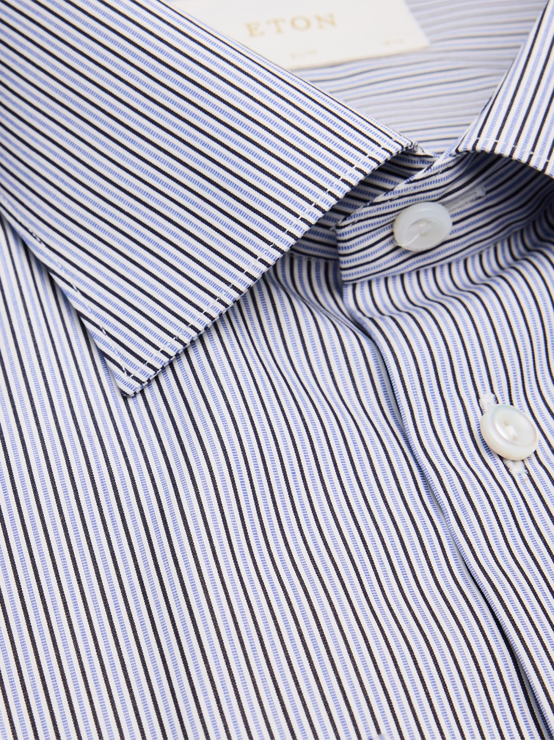 Eton’s slim-fit formal shirt is crafted of high-performance, crease-resistant cotton in a striped pattern.Spread collar Long sleeves, convertible buttoned barrel-to-French cuffs Shirttail hem Back darts Button front closure 100% Cotton Dry clean Imported