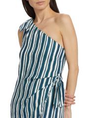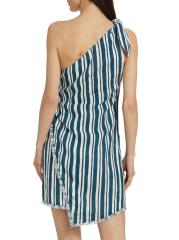 Striped Linen-Cotton One-Shoulder Minidress