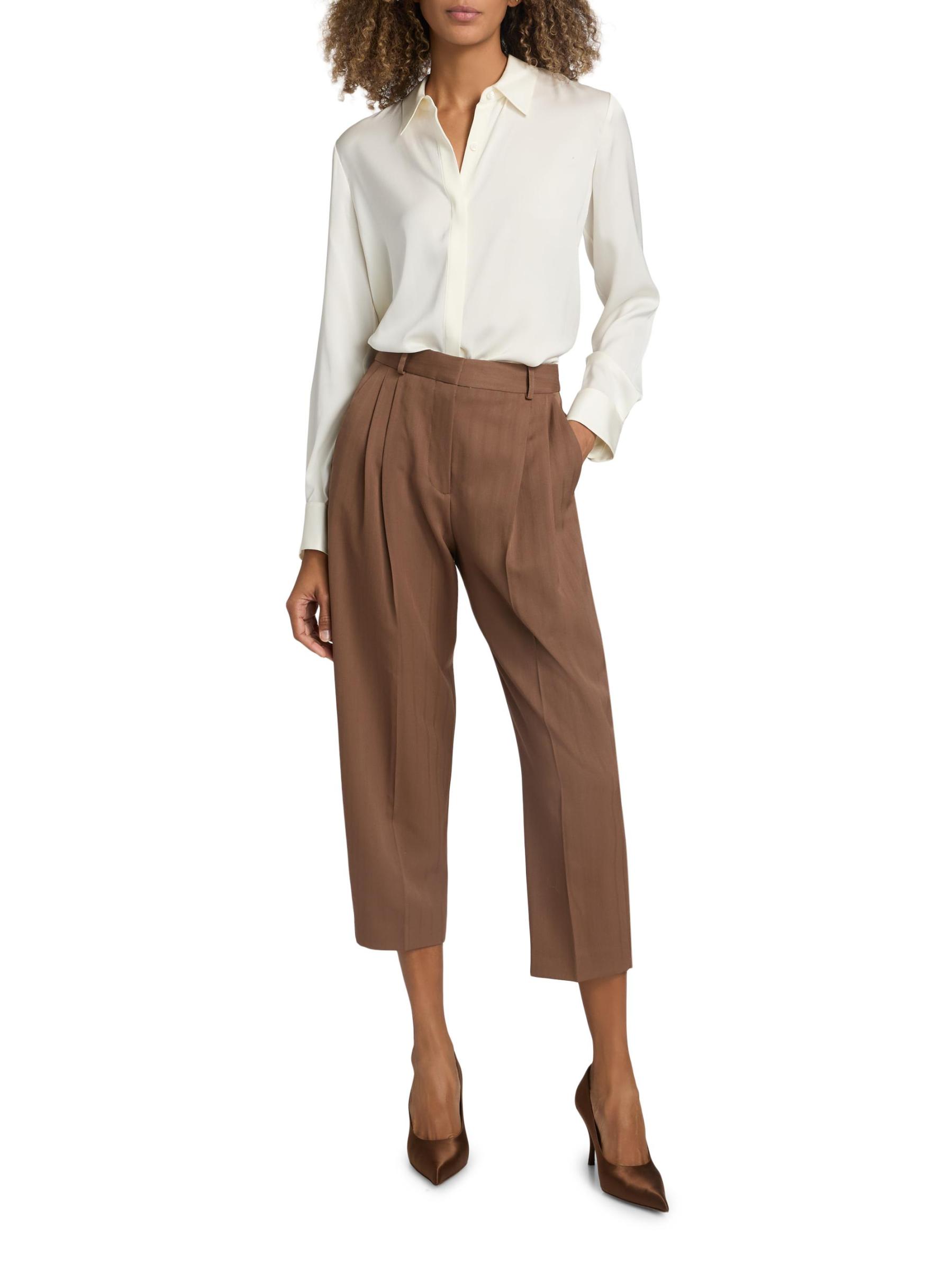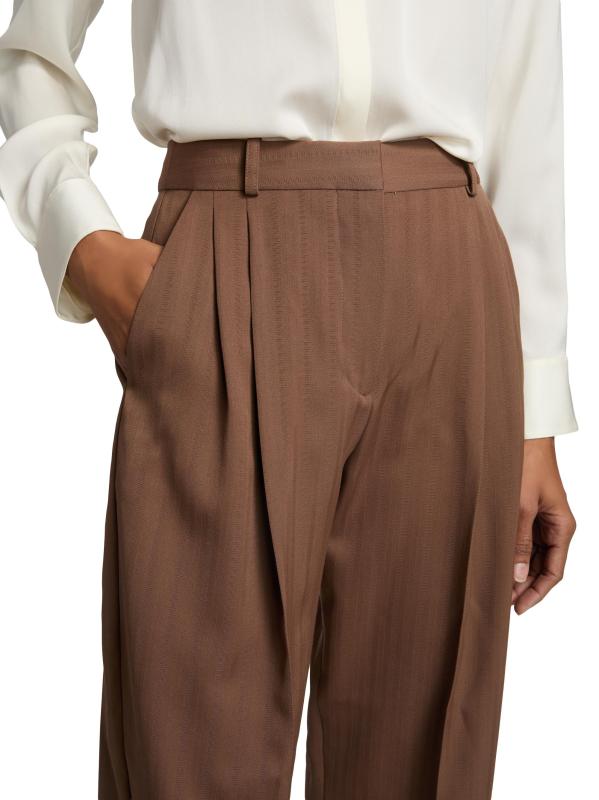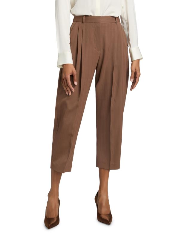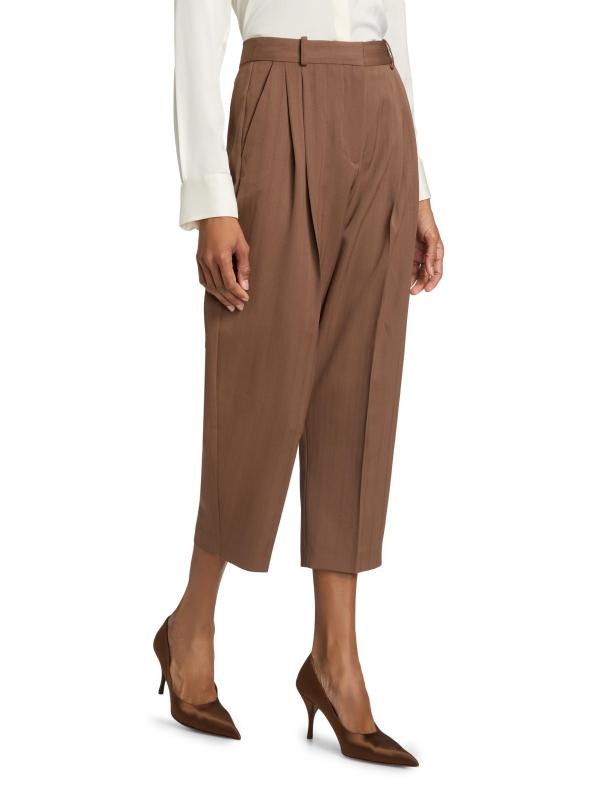 These Stella McCartney tailored pants are crafted of striped wool and cut to a balloon silhouette with pleating for shape.