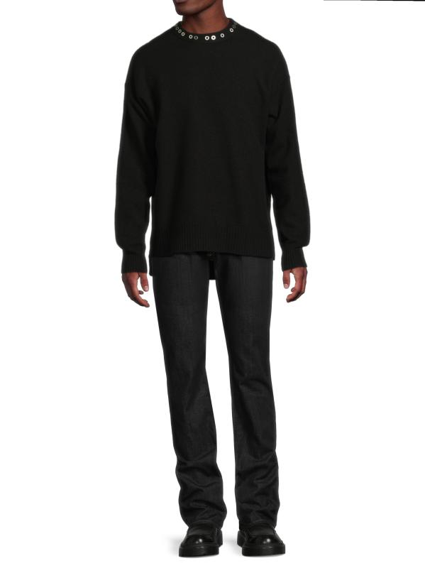 Crafted of wool, this Jil Sander sweater features stud applications at the crewneck. This regular-fit knit piece is trimmed with a rib-knit hem.Crewneck Long sleeves, rib-knit cuffs Rib-knit hem Pulls over 100% wool Dry clean Made in Italy
