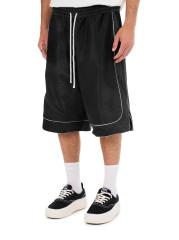 These Nahmias basketball shorts are crafted of perforated suede in a longline silhouette. A drawstring waistband, side on-seam pockets, and contrast piping detail this pair.
