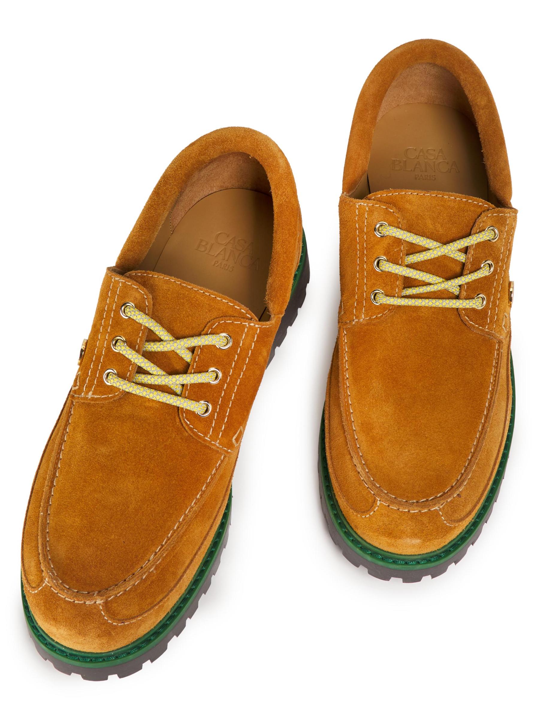 Crafted of suede, Casablanca's boat shoes are styled in a classic silhouette featuring the brand's signature interlocking CC logo.
