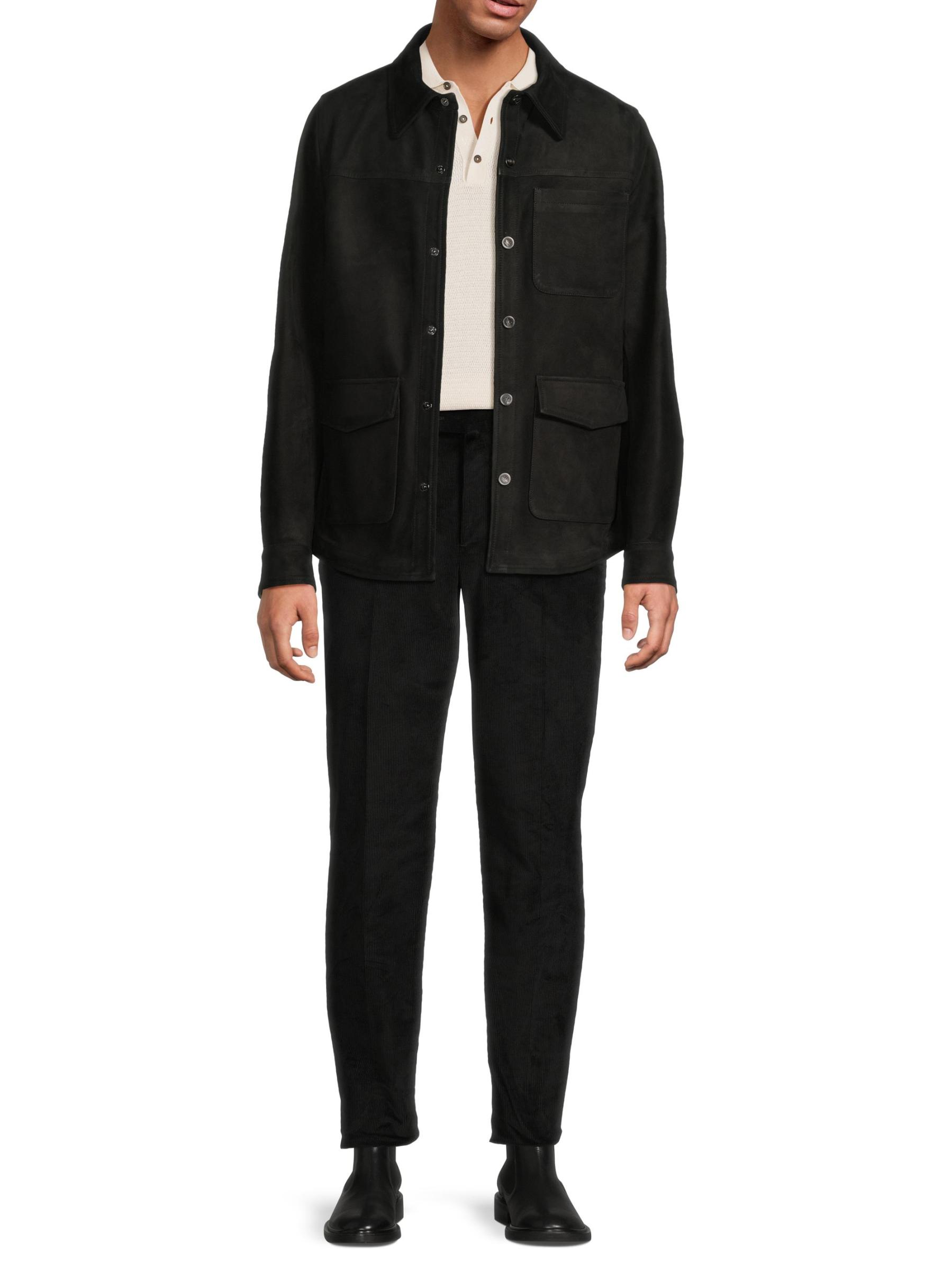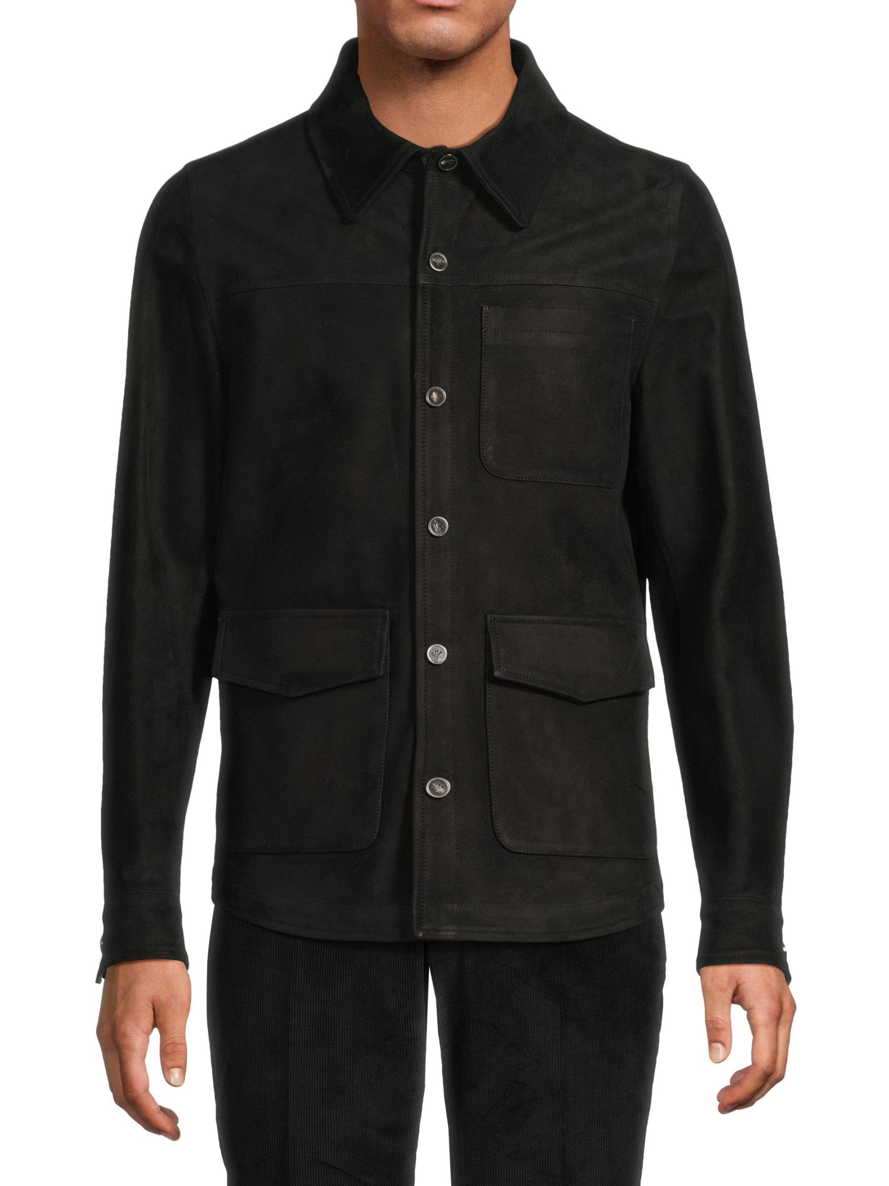 This Isaia overshirt is crafted of supple suede for a luxurious feel and look. A point collar, chest and side patch pockets, and a button-front closure lend elevated structure to this style.