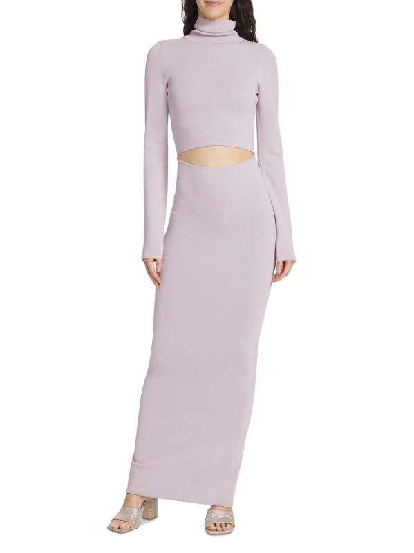 Crafted of a soft, stretch knit, Gauge81’s Suno maxi dress is designed with a classic turtleneck and elegant front cut out.Turtleneck Long sleeves Midriff cut out Pulls over 65% rayon/35% polyamide Hand wash Imported