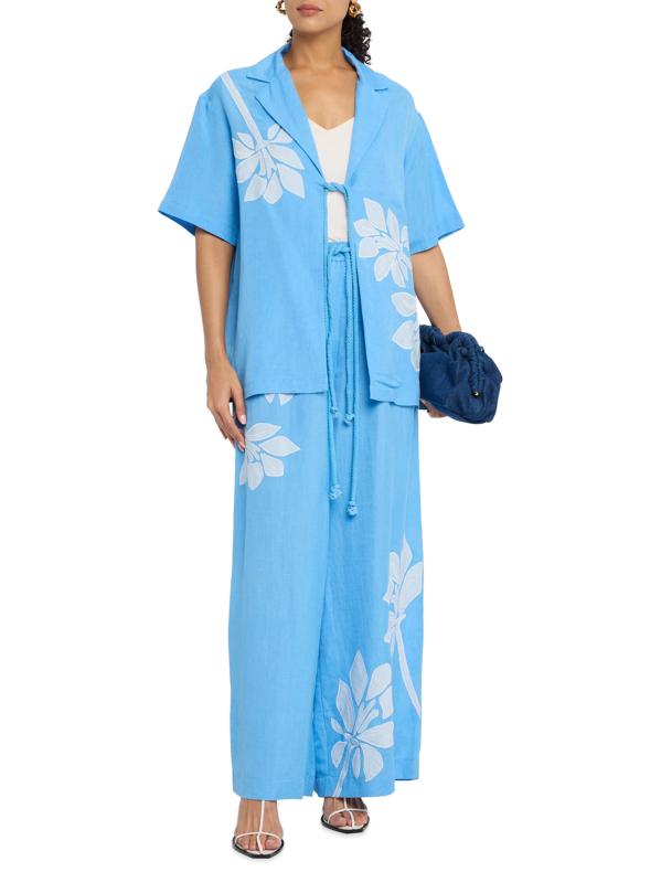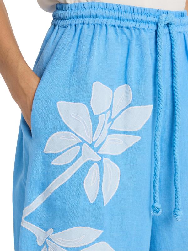Crafted of a breathable linen-blend, the Tammy pants by Significant Other are cut for a wide leg silhouette and adorned with bold floral embroidery. A braided drawstring defines the waist.