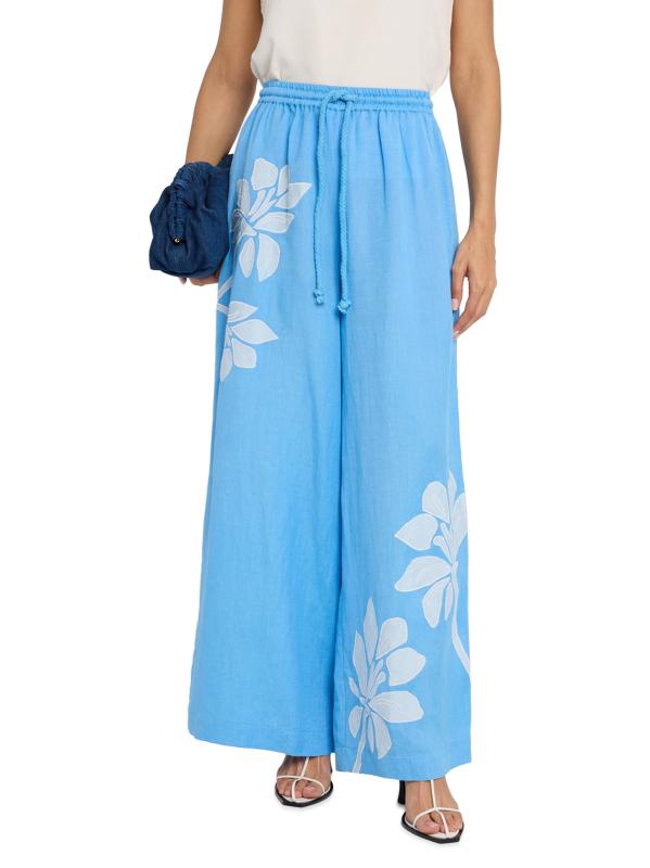 Crafted of a breathable linen-blend, the Tammy pants by Significant Other are cut for a wide leg silhouette and adorned with bold floral embroidery. A braided drawstring defines the waist.Elasticized drawstring waist Side zip closure Viscose/linen Lining: cotton Dry clean Imported