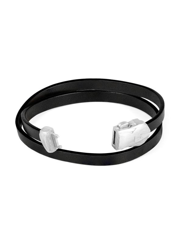 Tateossian x Lamborghini Sterling Silver Leather Double Wrap Bracelet