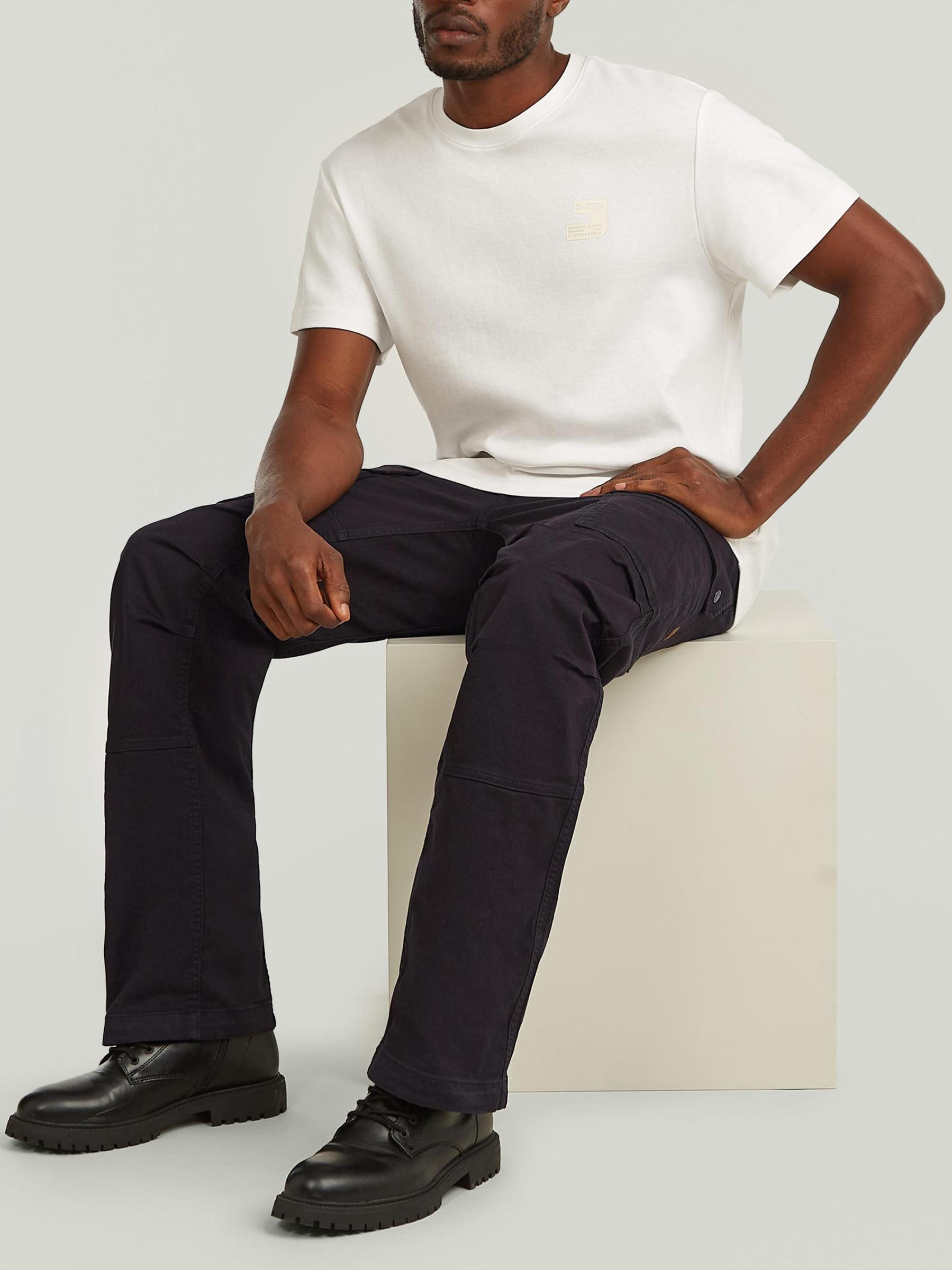 From the Temp Core Collection. Crafted of stretch cotton, these 3D straight cargo pants from G-Star are designed for a regular fit with a low waist. At the knee, a dimensional effect is created by the use of pleats, while various cargo pockets detail this pair.