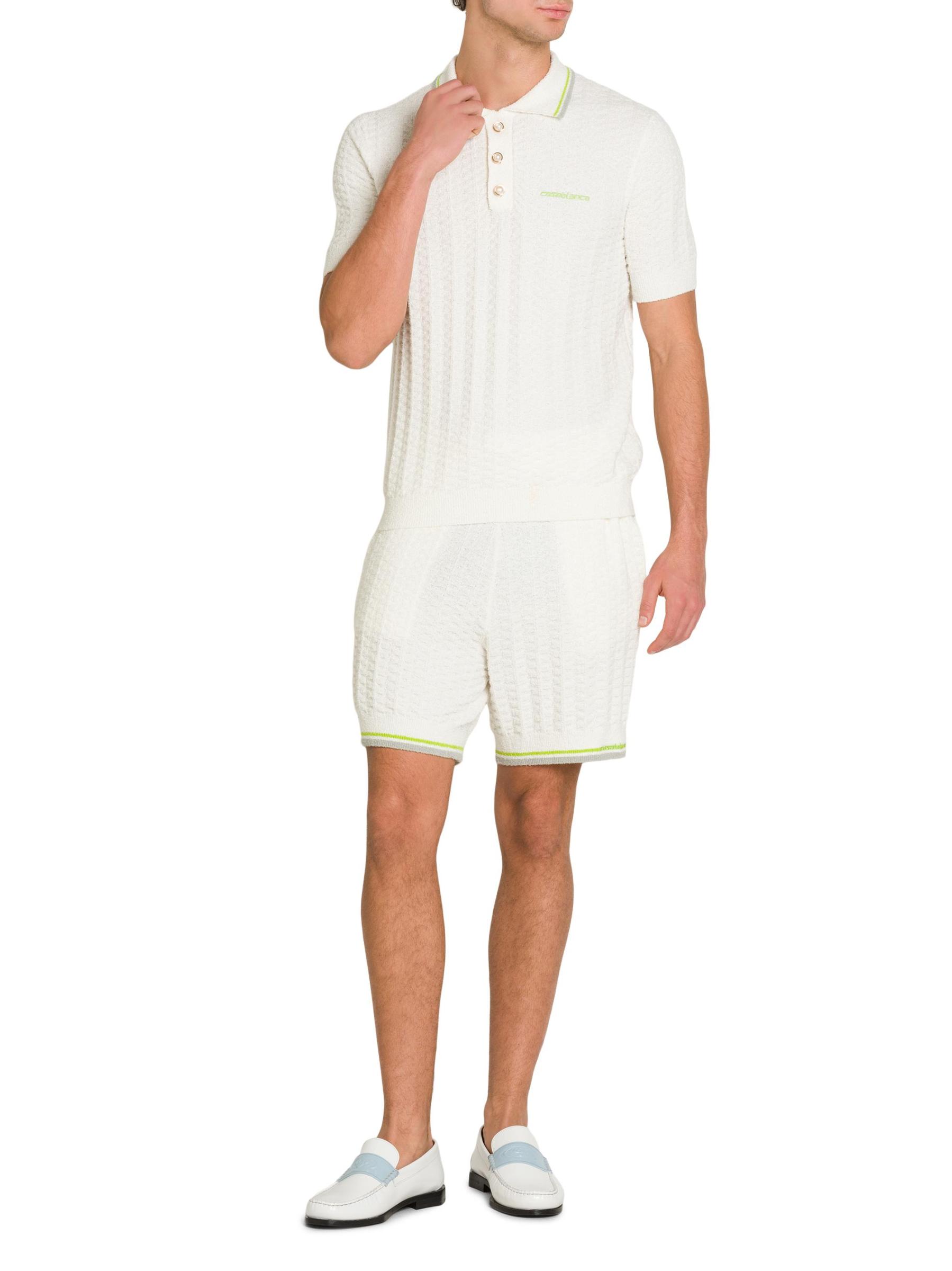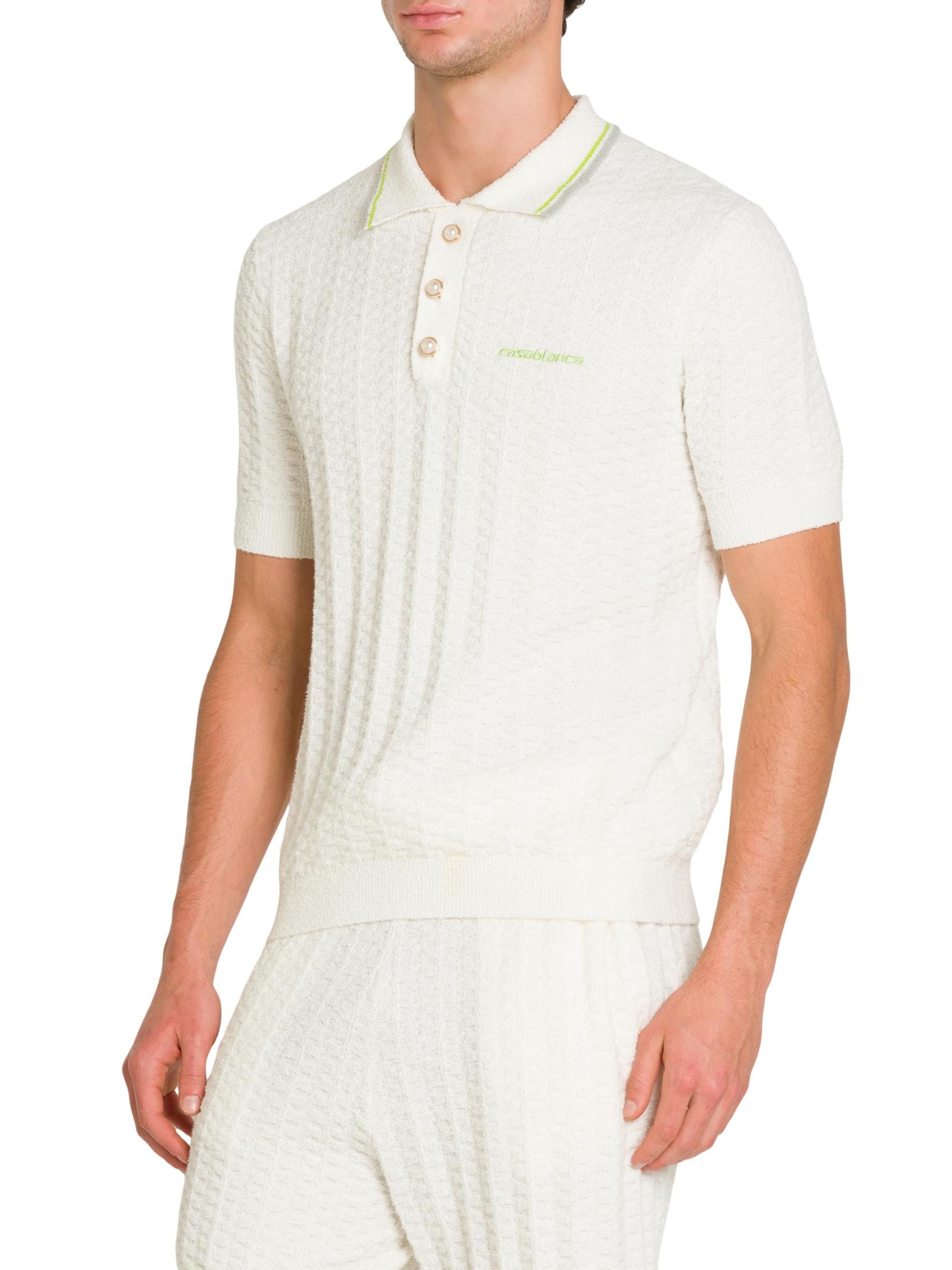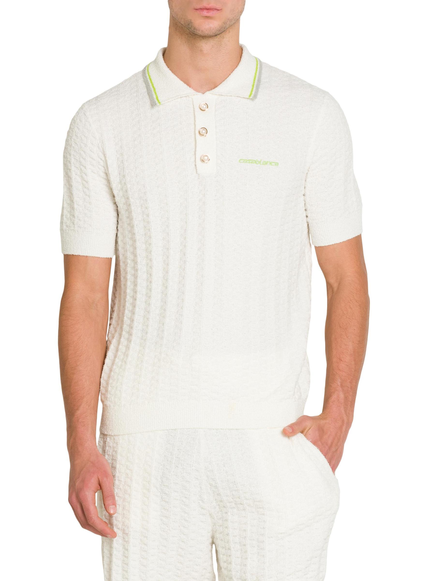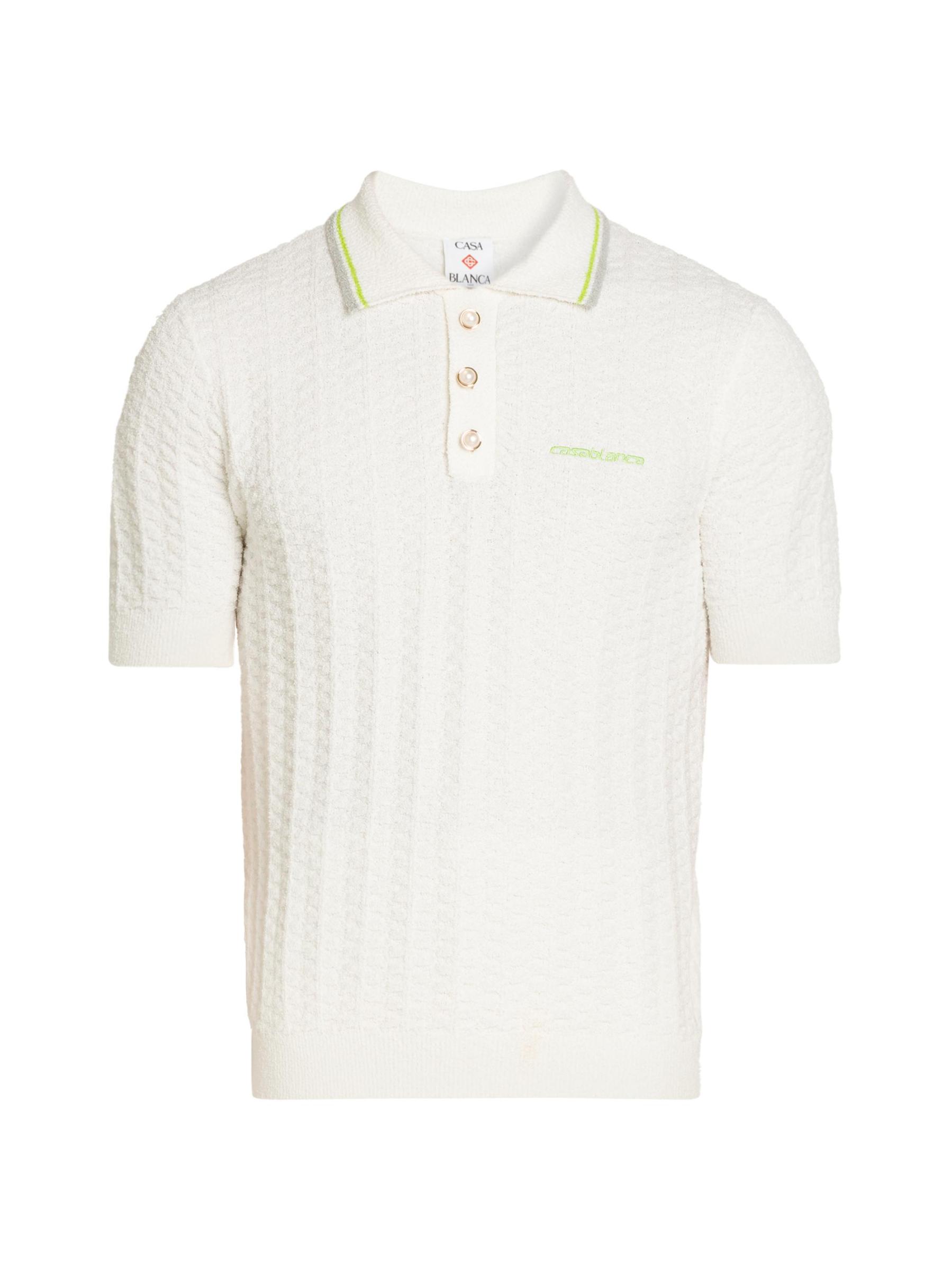 Casablanca’s boucle knit Tennis polo shirt is styled with decorative buttons and the brand's logo embroidered at the chest.Spread collar Short sleeves Rib-knit trim Three button placket Dry clean Imported