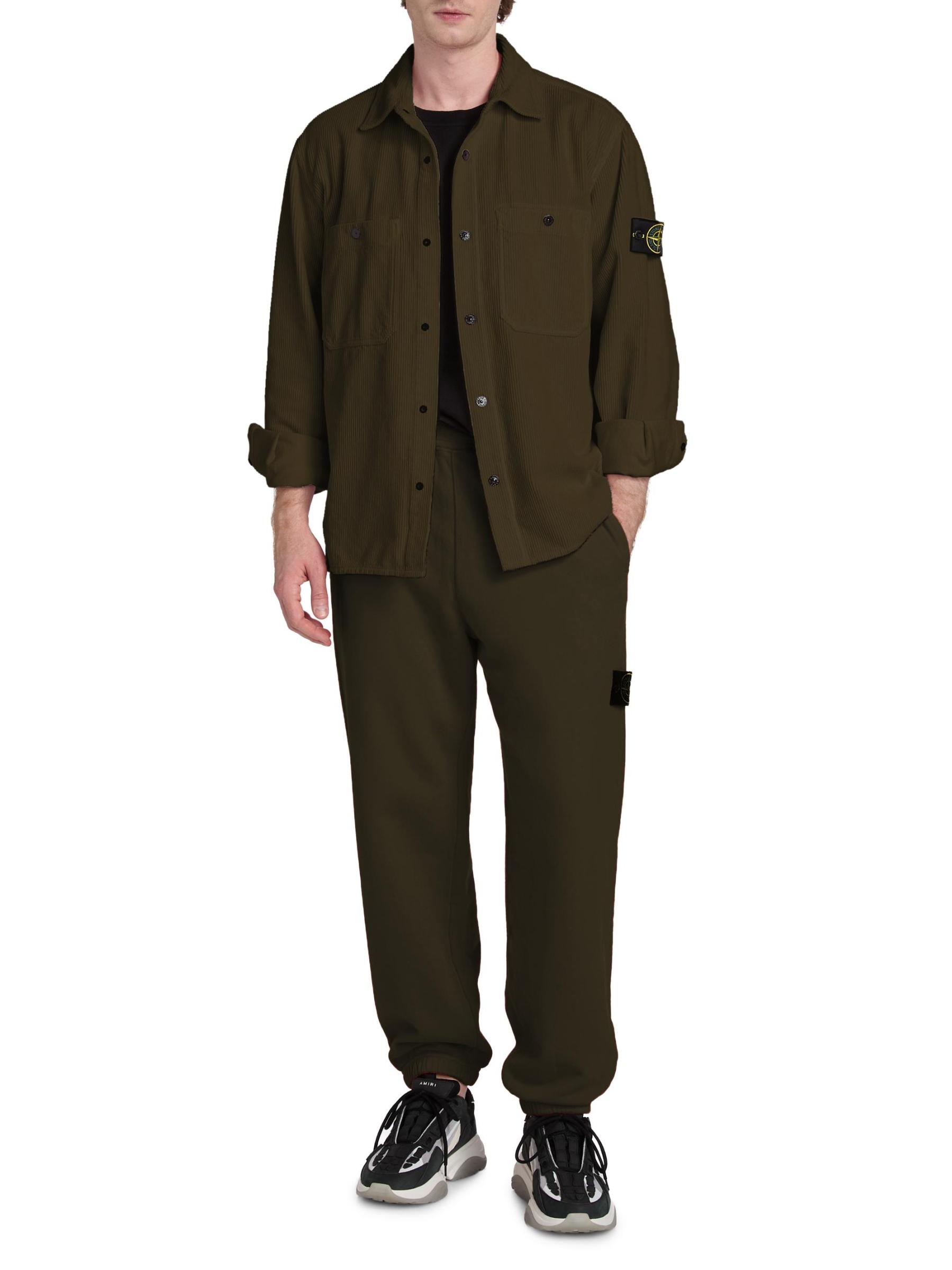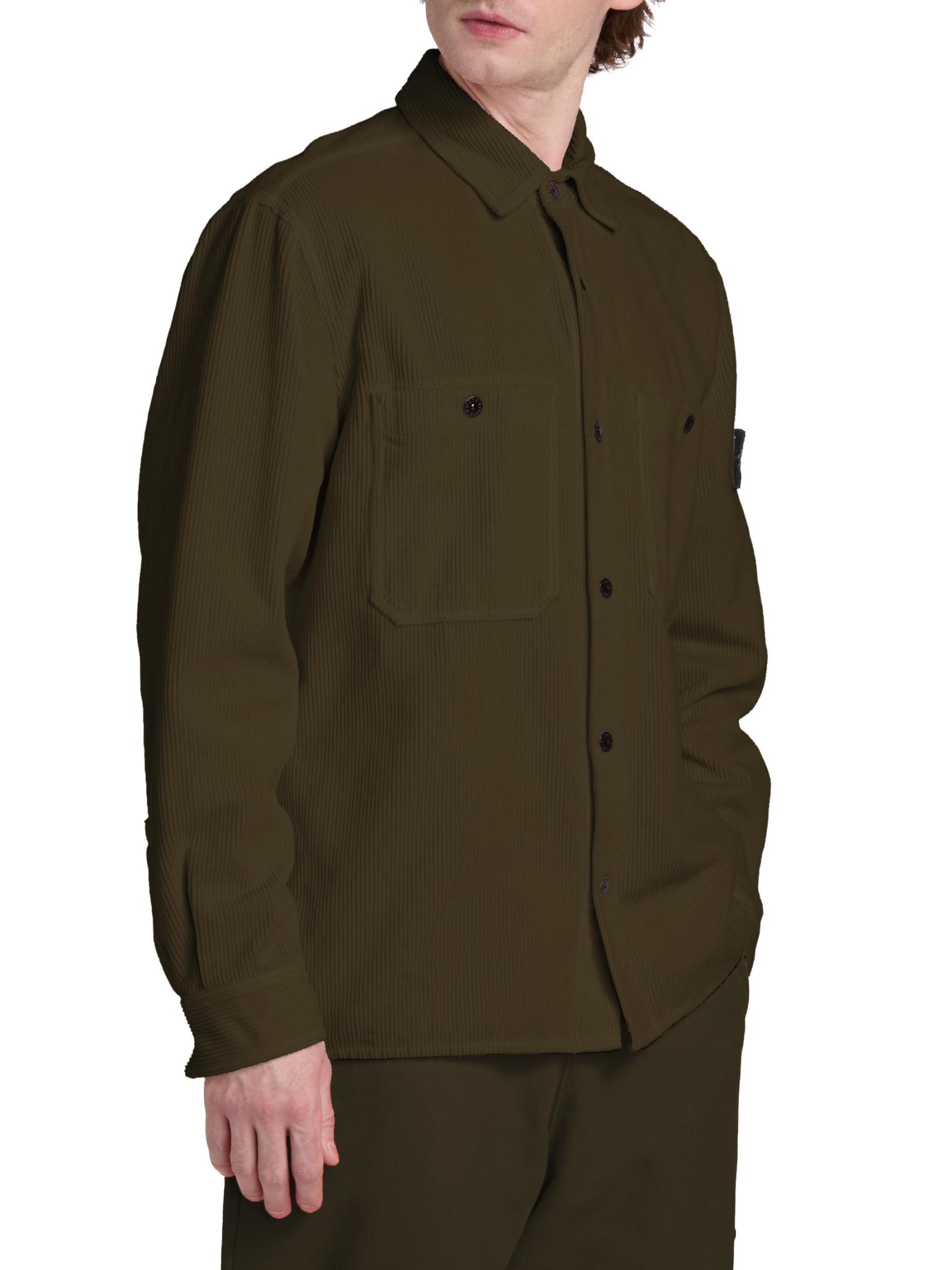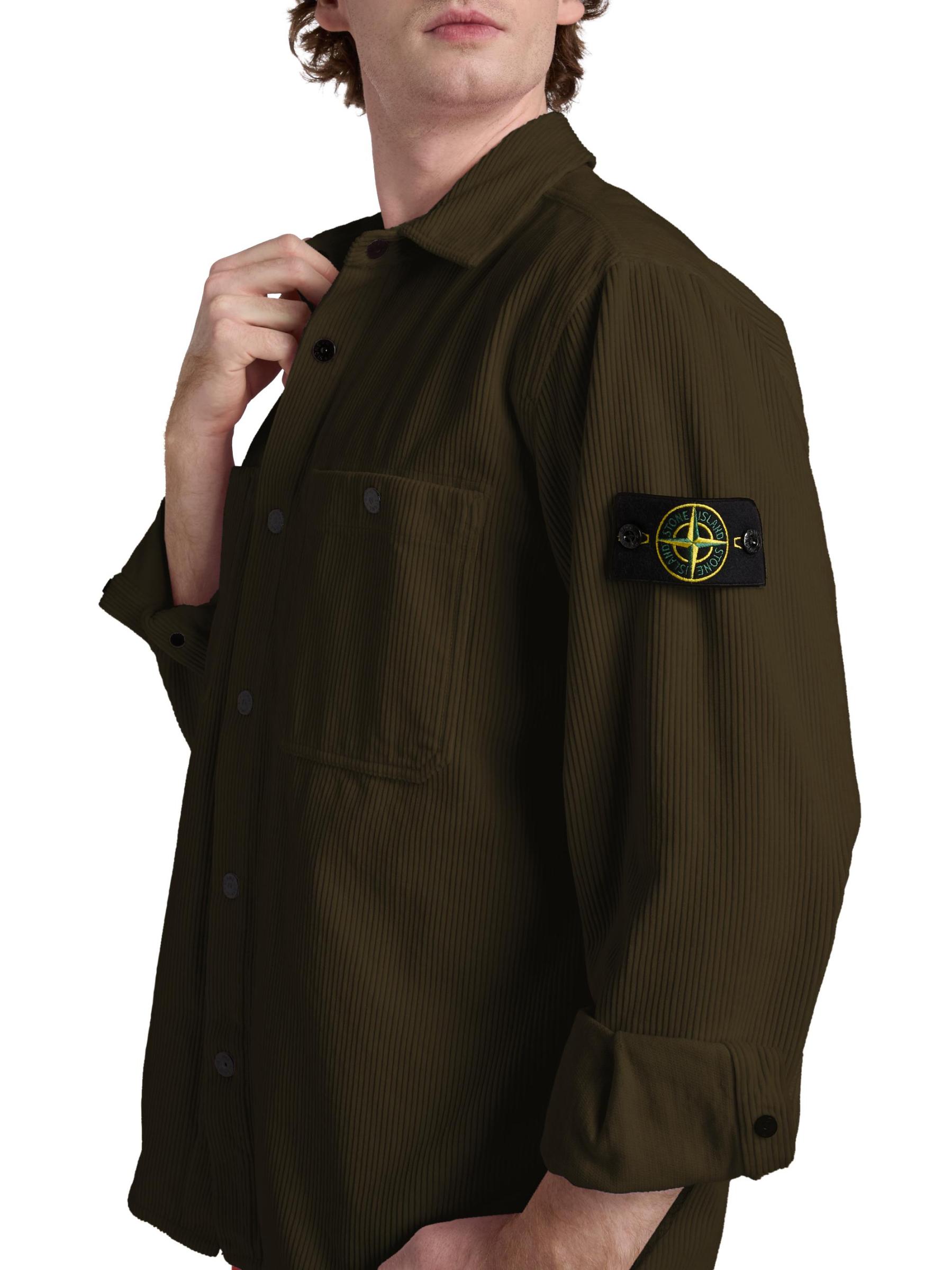 Crafted of textured cotton, this shirt jacket features Stone Island's signature logo patch on the left long sleeve. Chest button-through patch pockets detail this button-front style.Spread collar Long sleeves, button barrel cuffs Chest button-through patch pockets Button front closure 100% Cotton Dry clean Imported