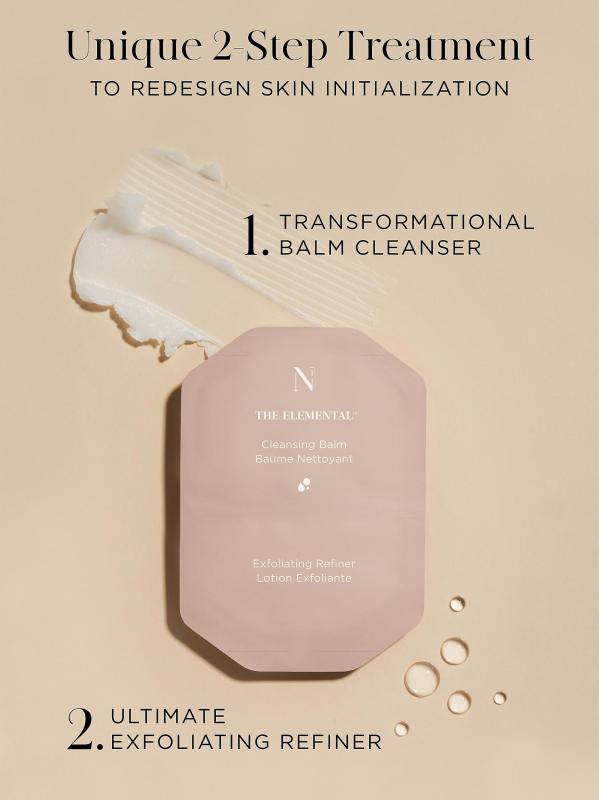 From the Elemental Collection. A truly unique two-step treatment to revolutionize skin initialization. First with a sumptuous transformational cleansing balm that soothes and respects the skin barrier, for a superior cleansing experience. Followed by the ultimate exfoliating refiner to smooth and refine skin texture. Made in USA..