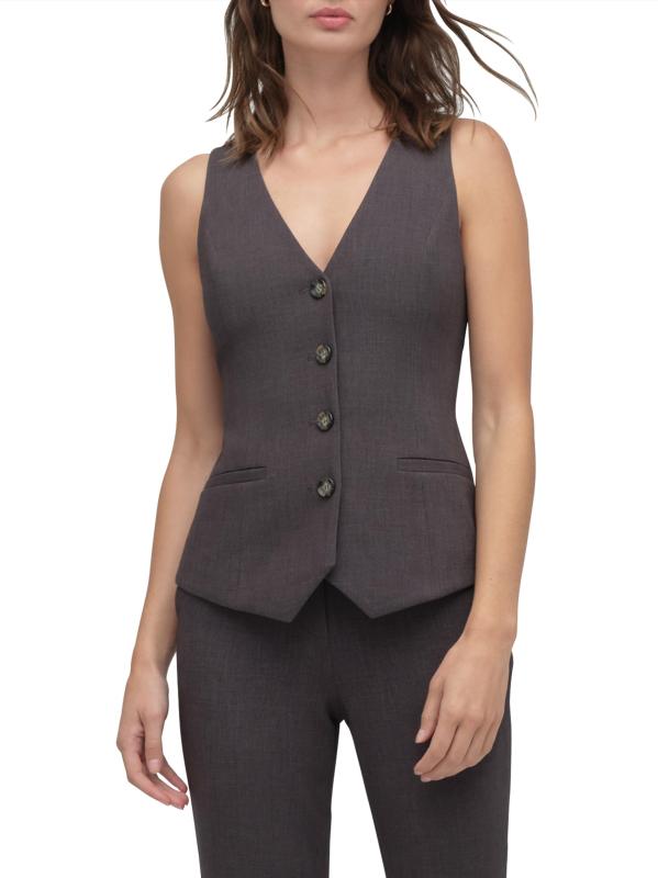 Favorite Daughter's The Jones woven vest features a V-neck, button-front closure, and sleeveless cut.