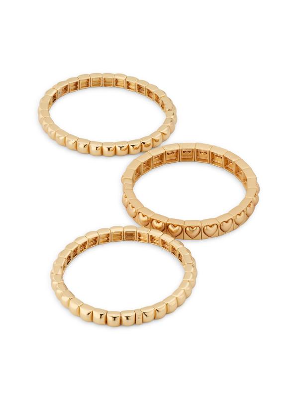 The Puffy Heart Stud 3-Piece Goldtone Bracelet Set