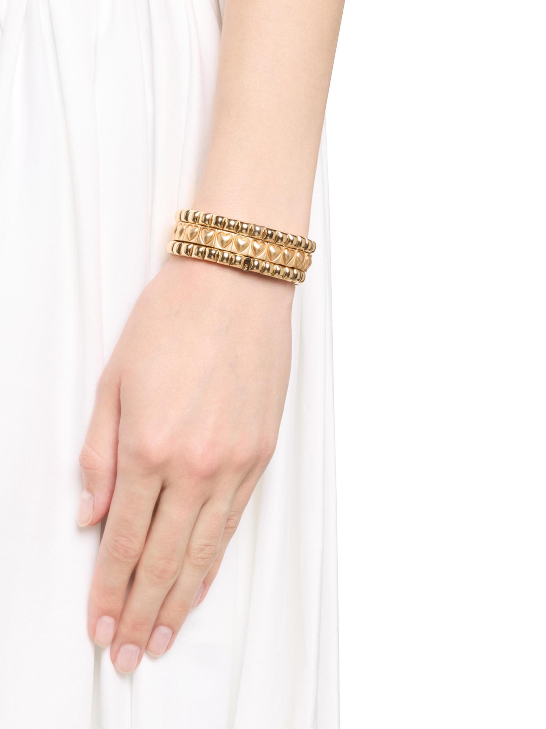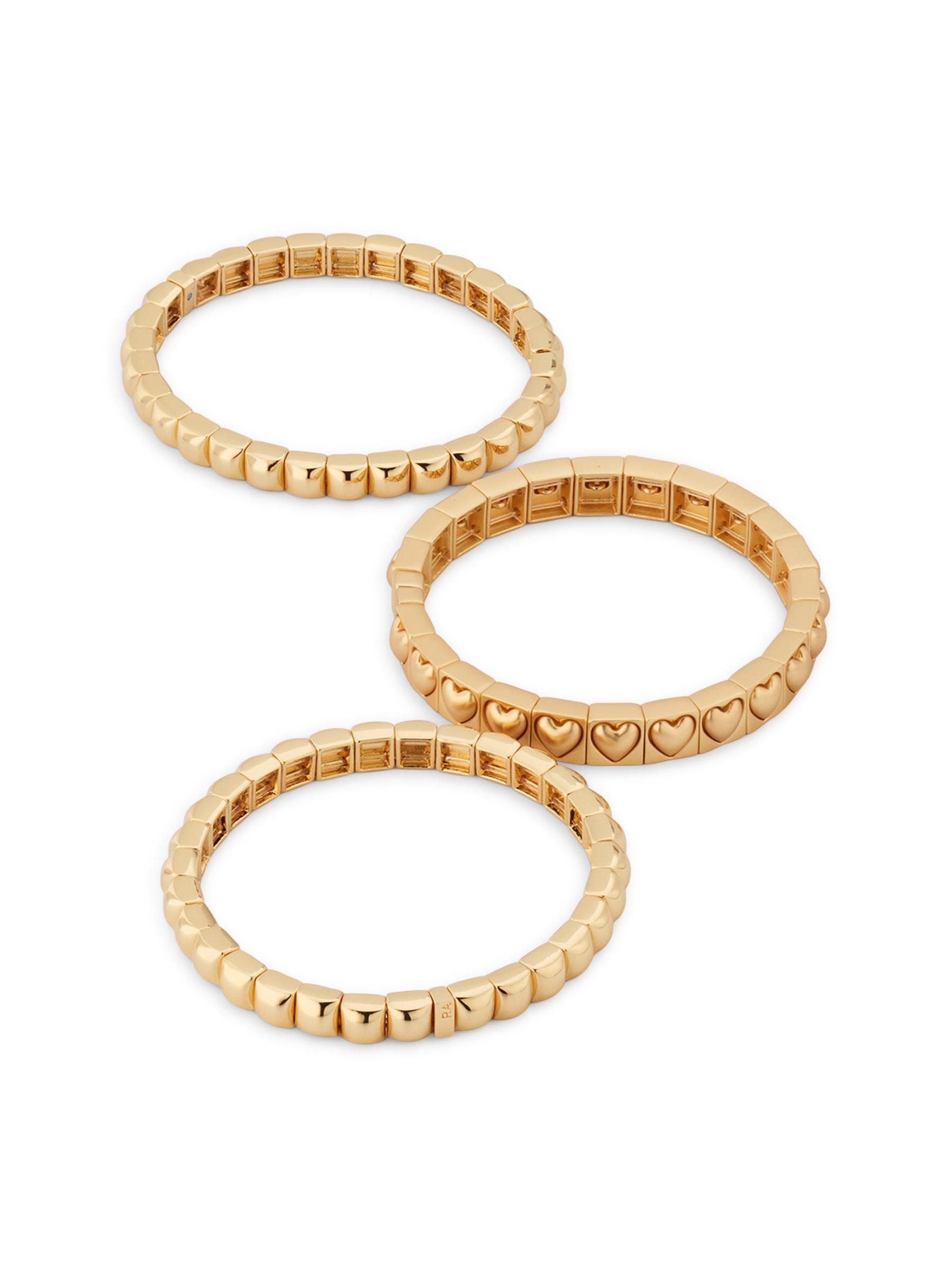 The Puffy Heart Stud trio bracelet set from Roxanne Assoulin features a glossy goldtone design adorned with either rounded studs or playful puffy hearts.Set of three bracelets Brass Slips on Imported