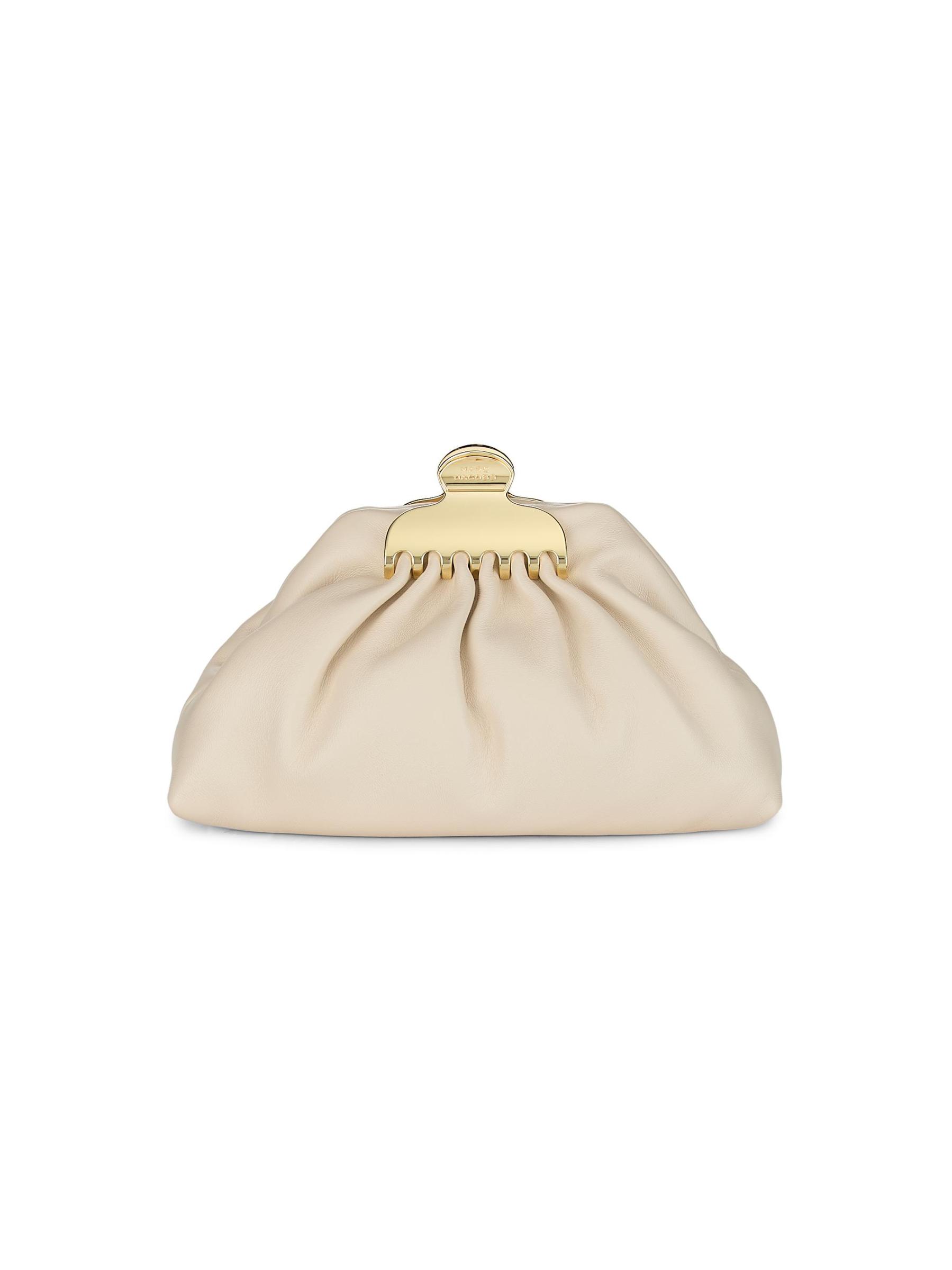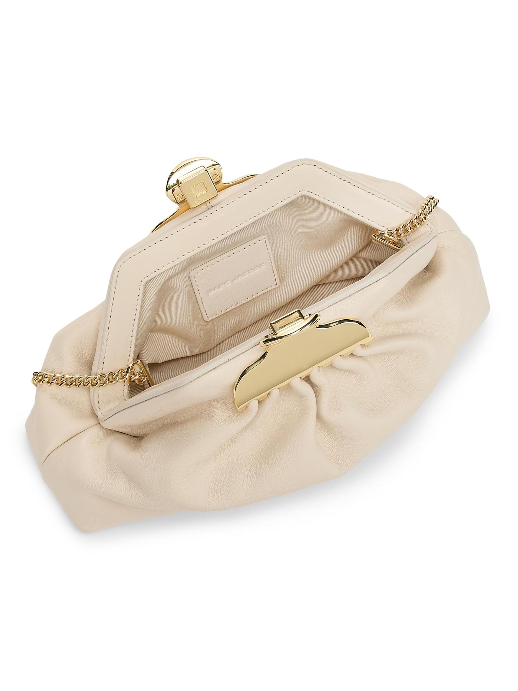 Crafted of leather, the Small Claw Clip clutch from Marc Jacobs is detailed with a claw clip-inspired closure at the top. A removable shoulder chain completes this piece.