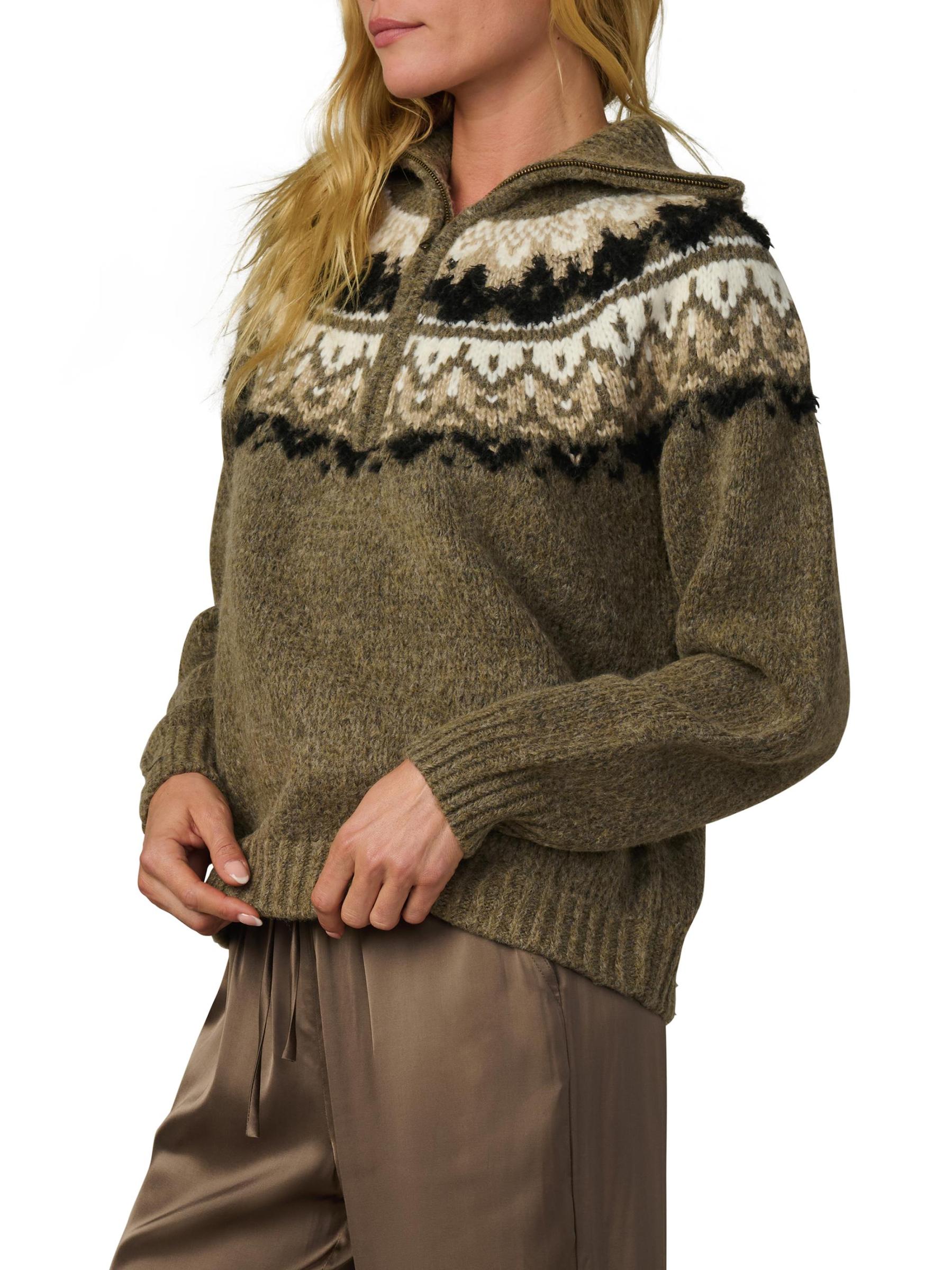Crafted of a cozy wool and cotton blend, Joe's Jeans' The Wells quarter-zip sweater showcases a charming Fair Isle-inspired pattern across the yoke and a refined rib-knit trim.