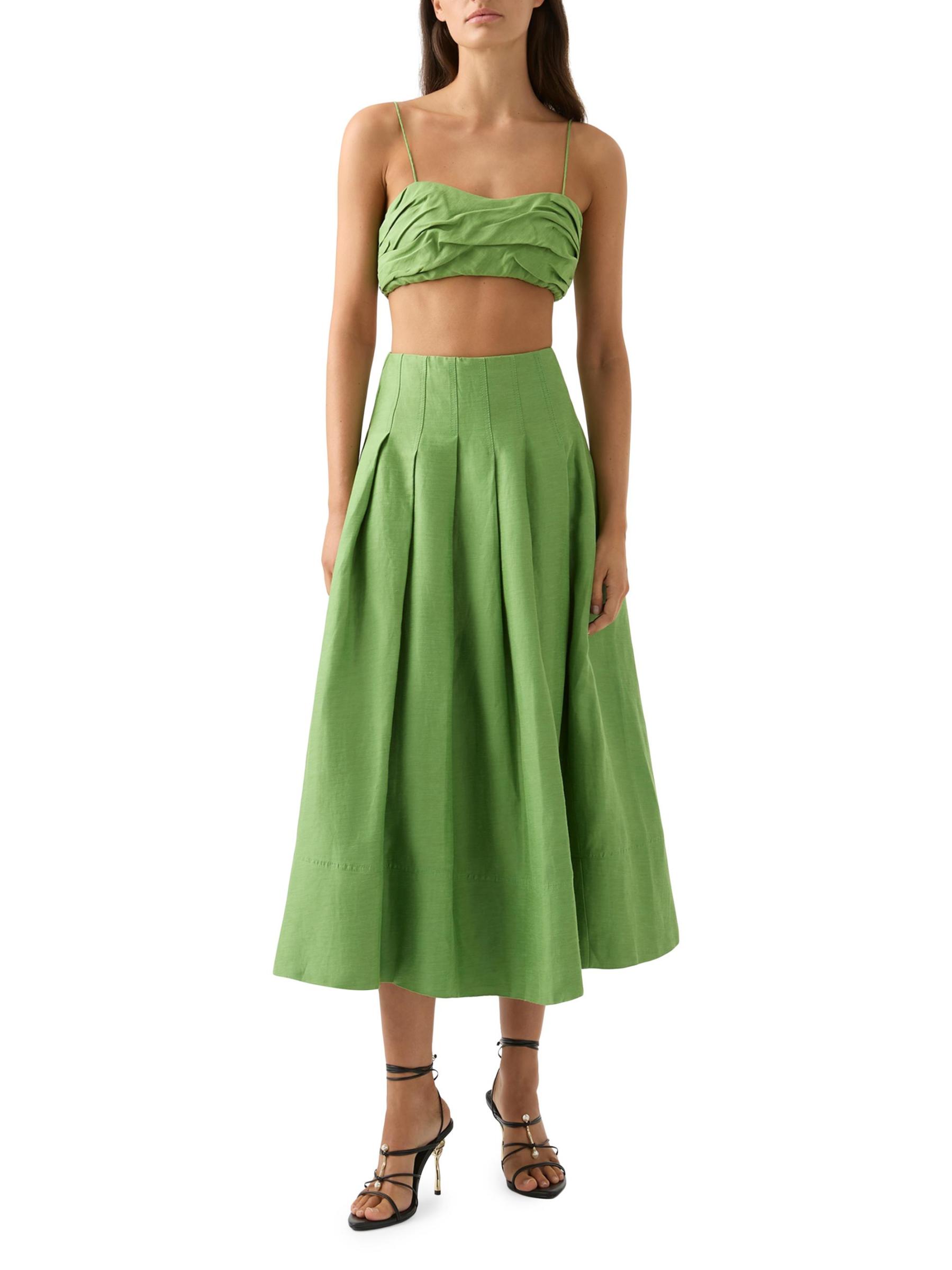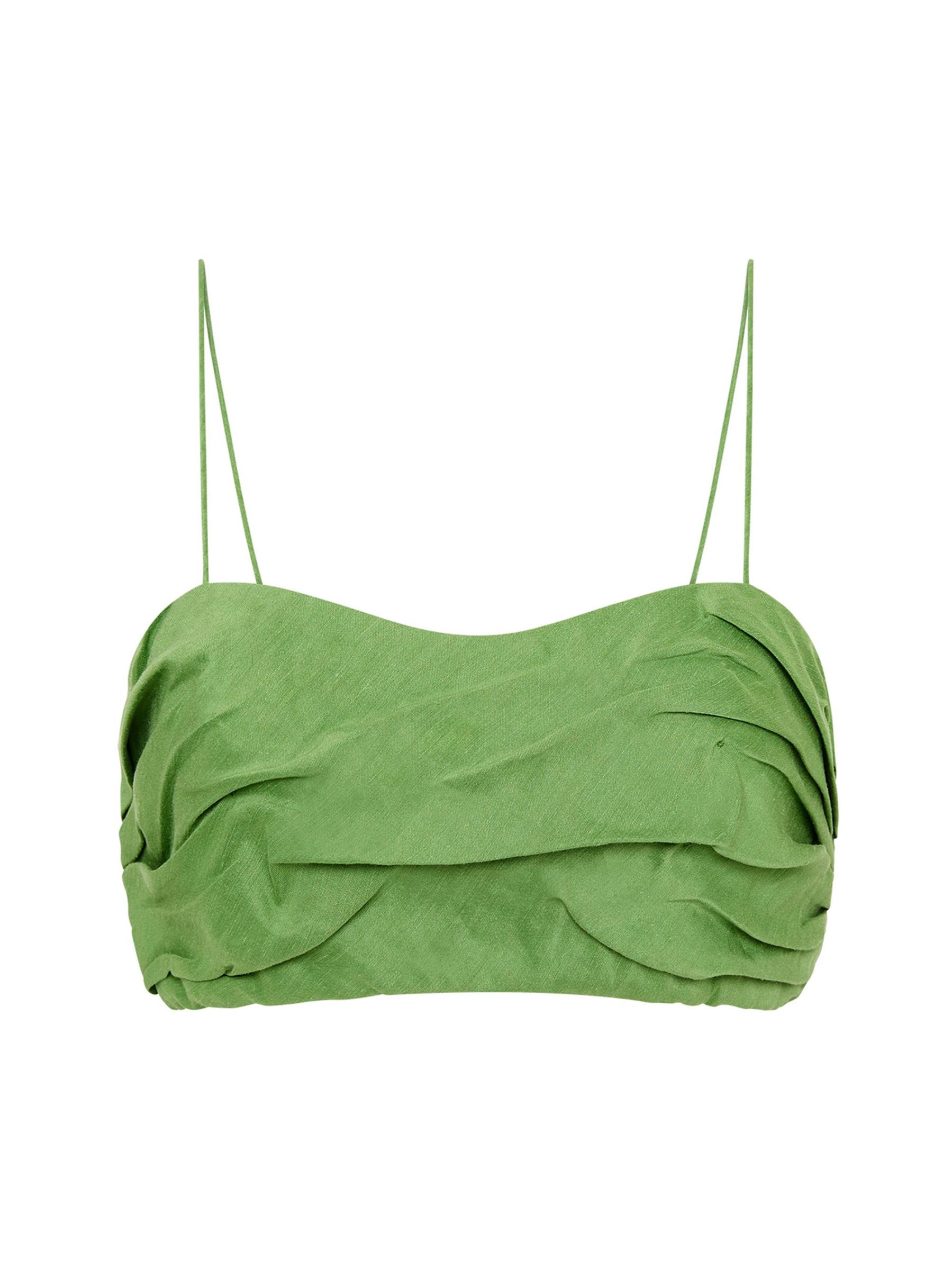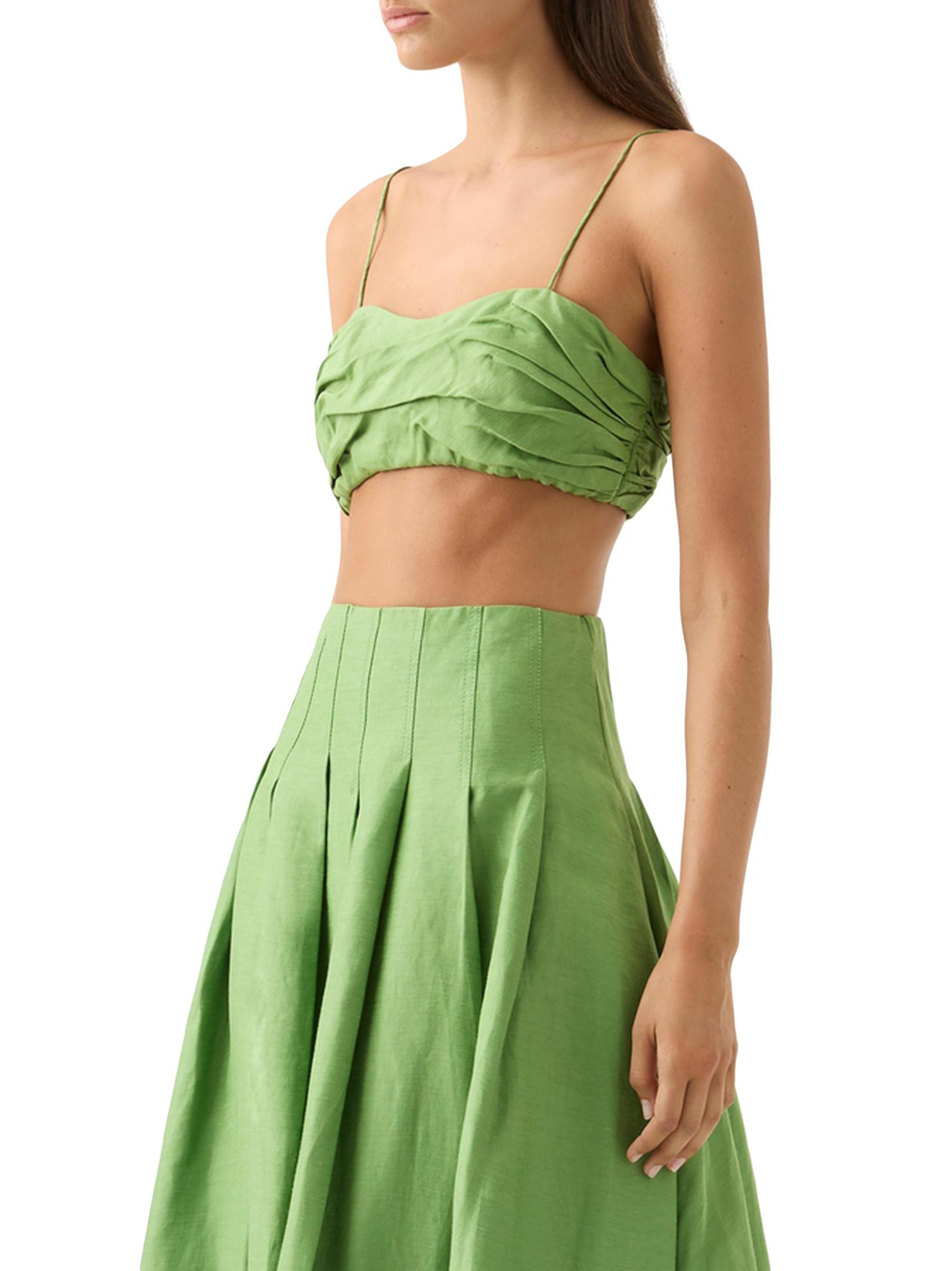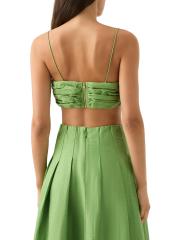 Thea Pleated Linen-Blend Crop Top
