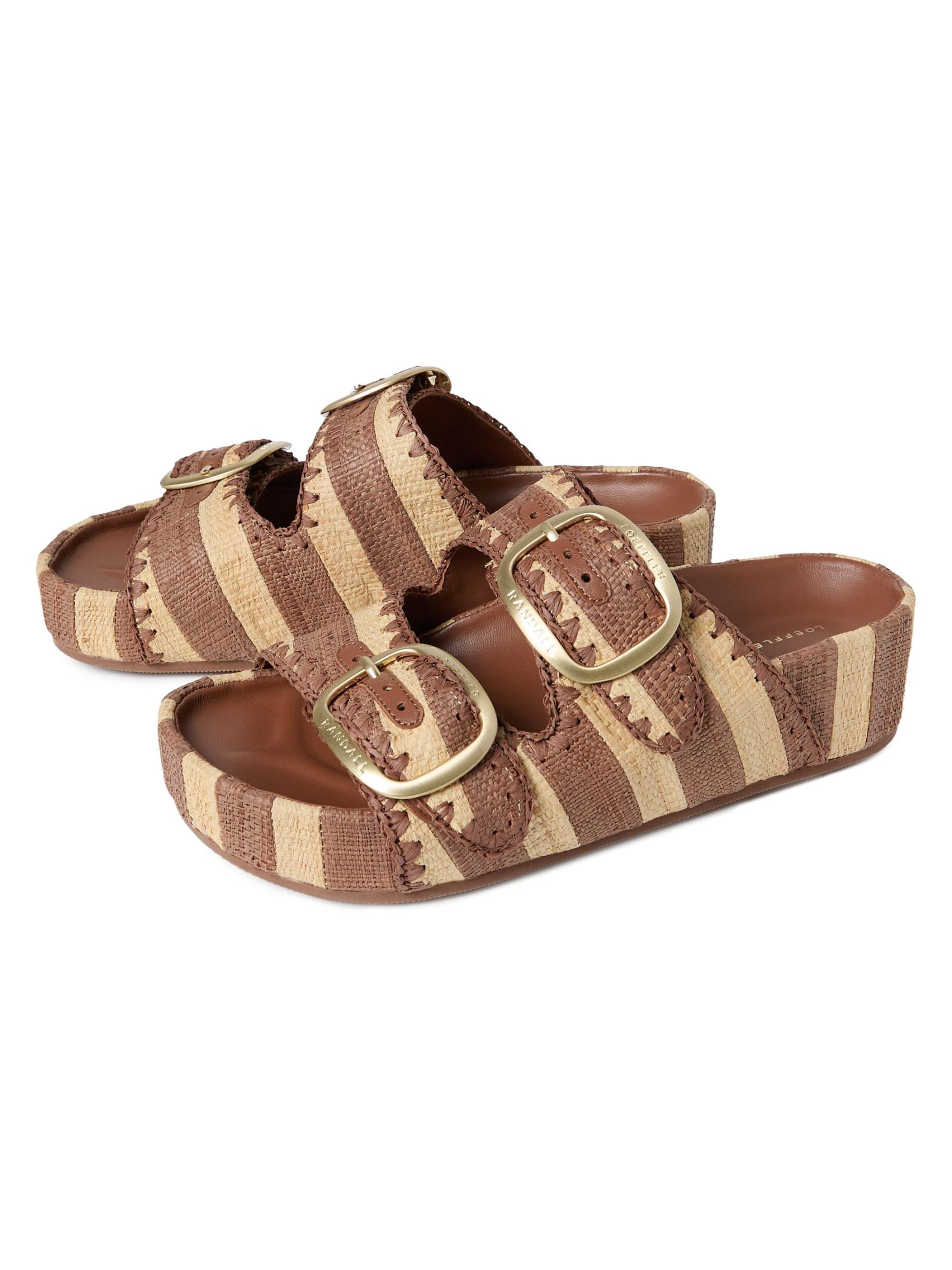 These Theo open-toe platform sandals from Loeffler Randall are styled with a striped design and two buckled straps.Open toe Slips on Cotton/polyamide upper Leather lining Rubber sole Spot clean Imported