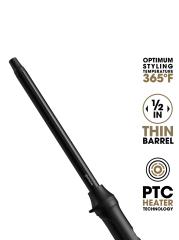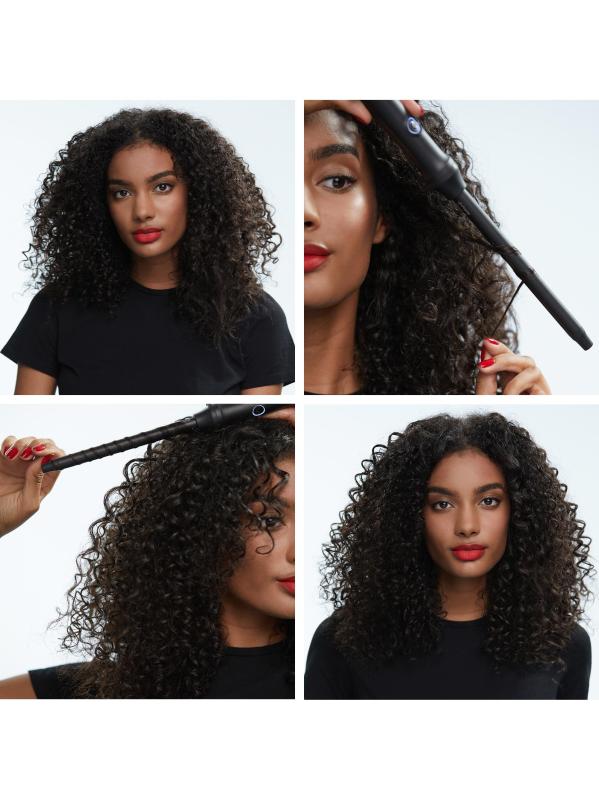 This curling wand features a thinner and longer barrel to create long-lasting tight, defined, and even curls. The self-regulating, ceramic barrel maintains the safer-for-hair temperature of 365°F so that results are achieved quickly for effective curling with less damage.