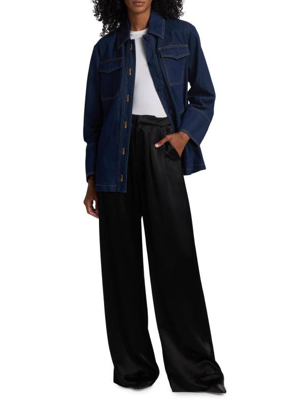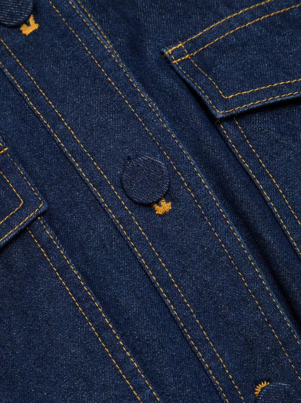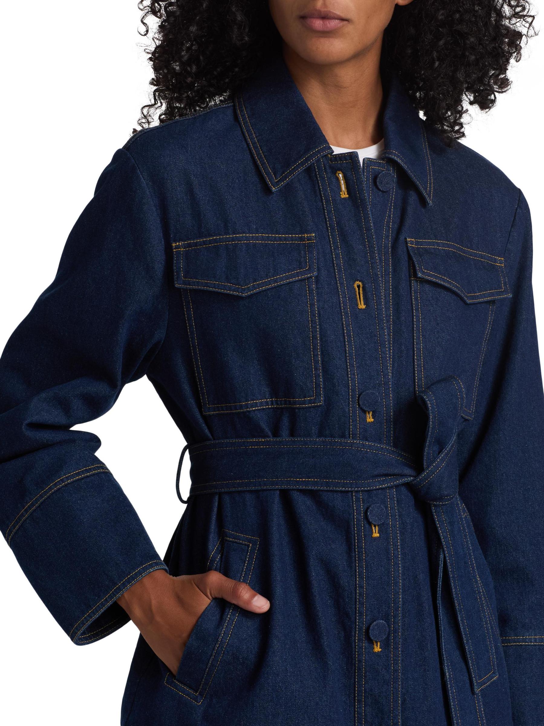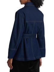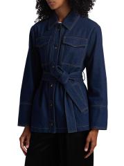 Crafted of cotton, this denim jacket from If Only Studio is designed with a spread collar, four pockets, and a self-tie belt. The style fastens with a button-front closure.Spread collar Long sleeves Chest flap patch pockets Side welt pockets Self-tie belt Button front closure 100% Cotton Lining: 80% polyester/20% cotton Machine wash Imported