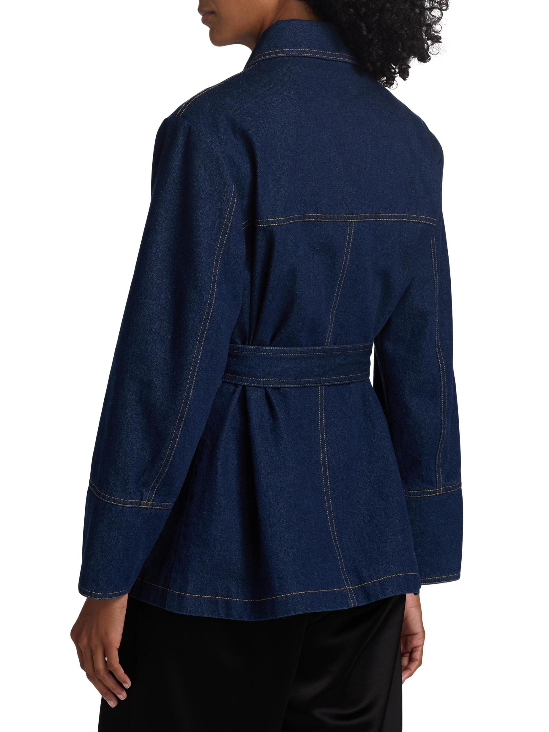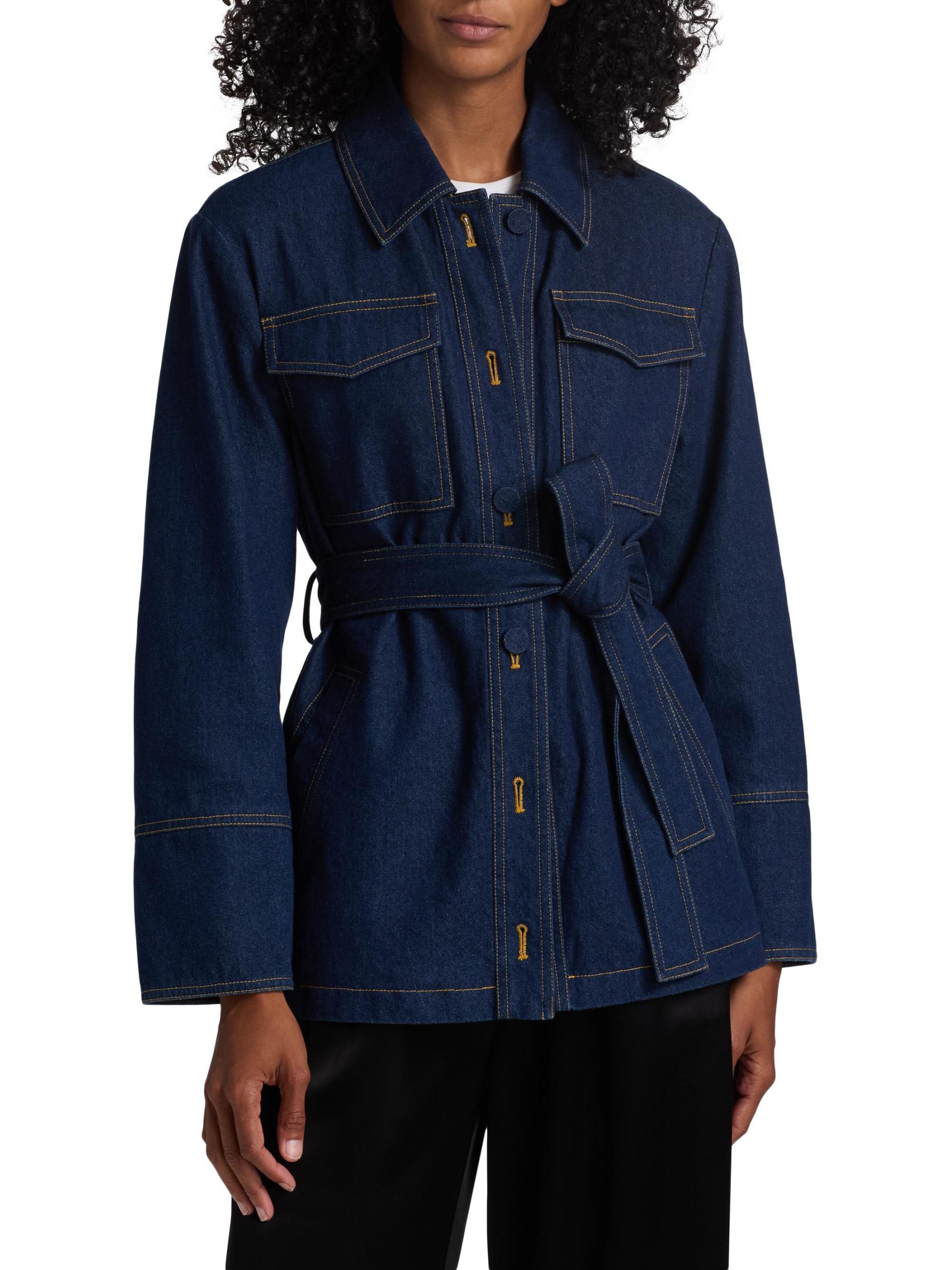 Crafted of cotton, this denim jacket from If Only Studio is designed with a spread collar, four pockets, and a self-tie belt. The style fastens with a button-front closure.