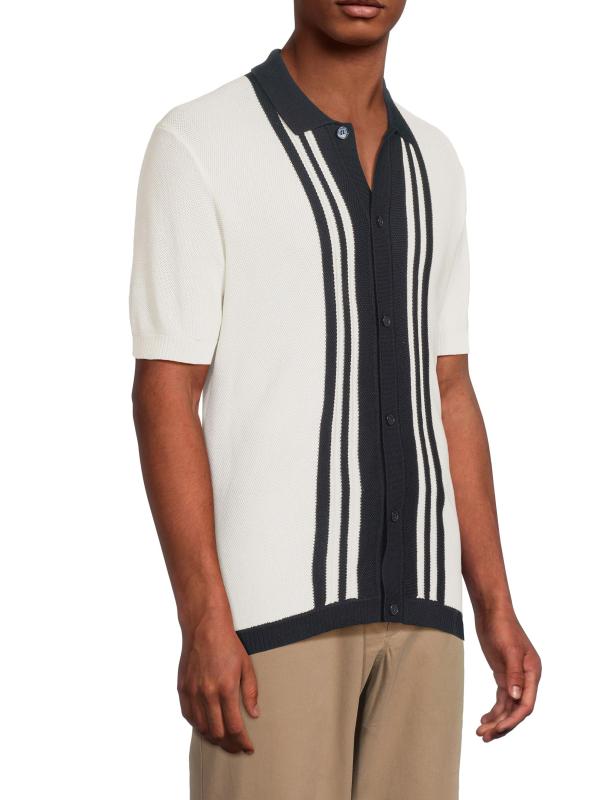 Knitted of cotton, this Tierman Lumina shirt from Orlebar Brown is designed with contrast stripes along the button-front placket.Spread collar Short sleeves Rib-knit trim Button front closure 100% Cotton Machine wash Made in Italy