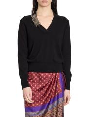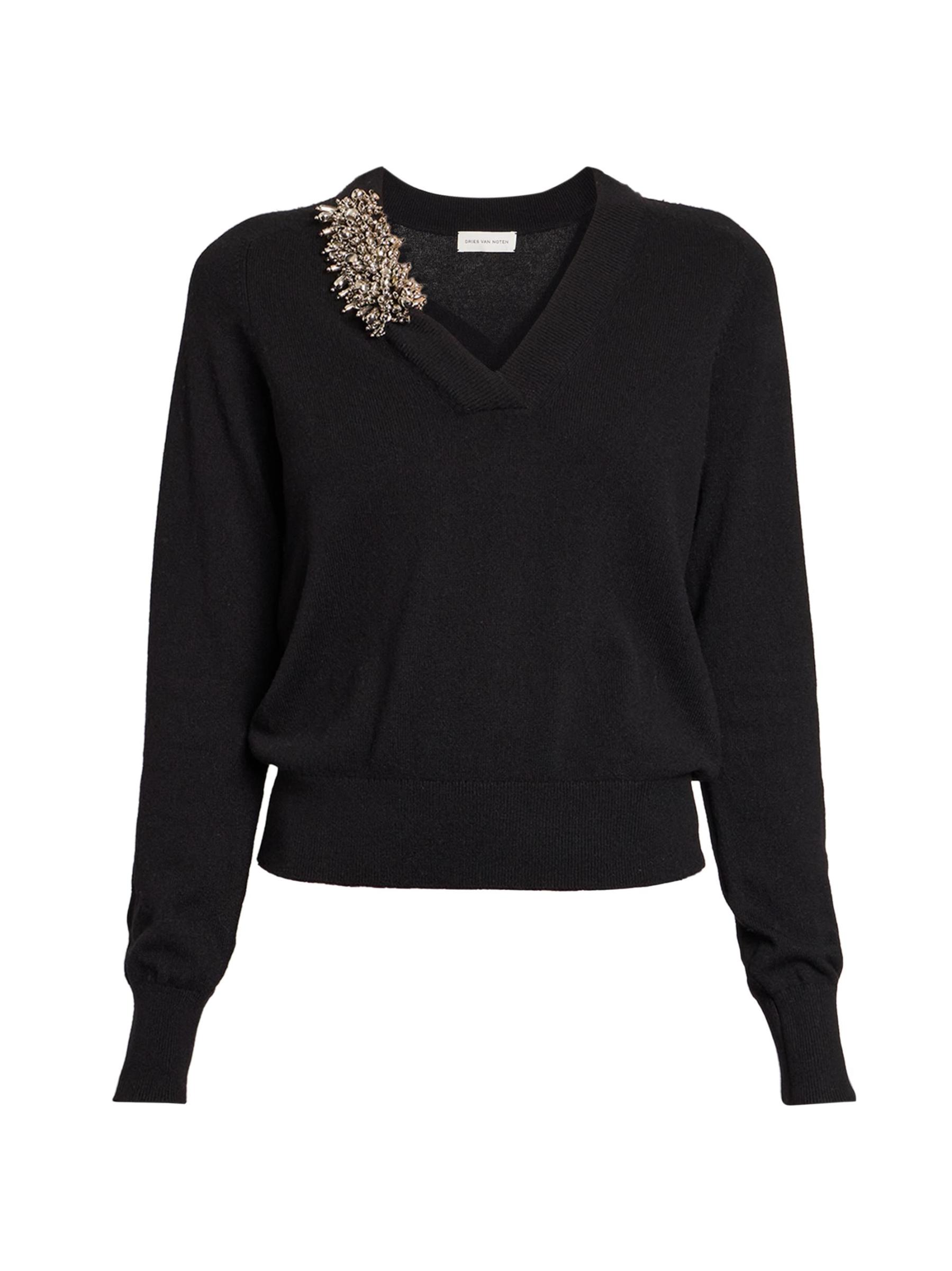 Crafted of luxe cashmere, this Tinker sweater from Dries Van Noten features a V-neck accented with a lustrous, dimendional embellishment.