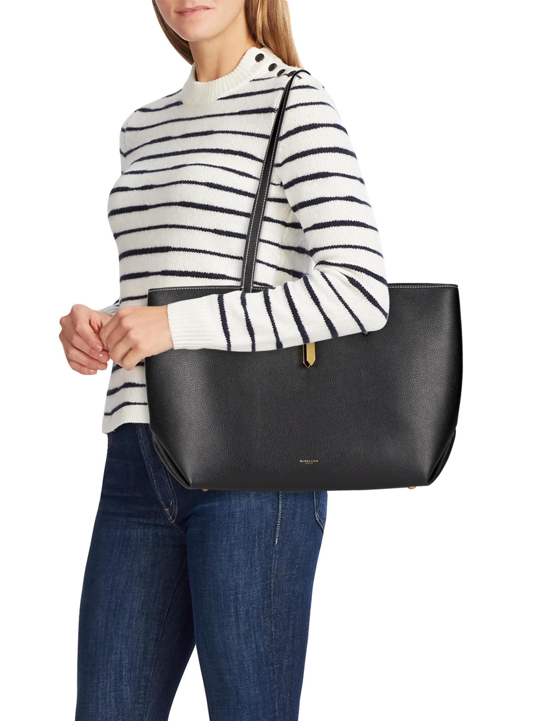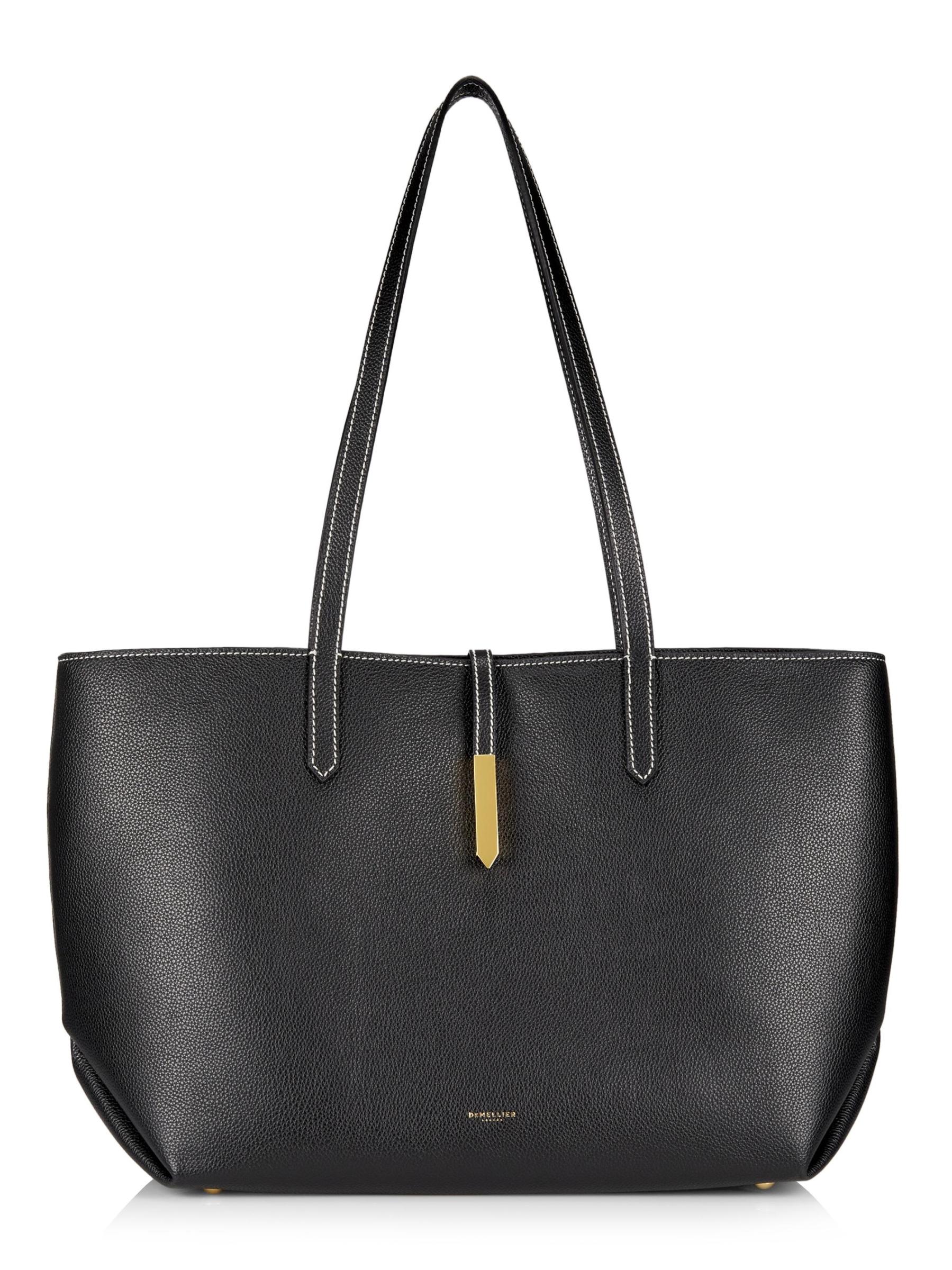 DeMellier's Tokyo tote bag is a spacious style crafted of leather. The accessory features a magnetic hardware closure shaped in an arrow and multiple pockets.Interior: one zip and two slip pockets Magnetic closure Leather upper Lining: cotton Made in Spain
