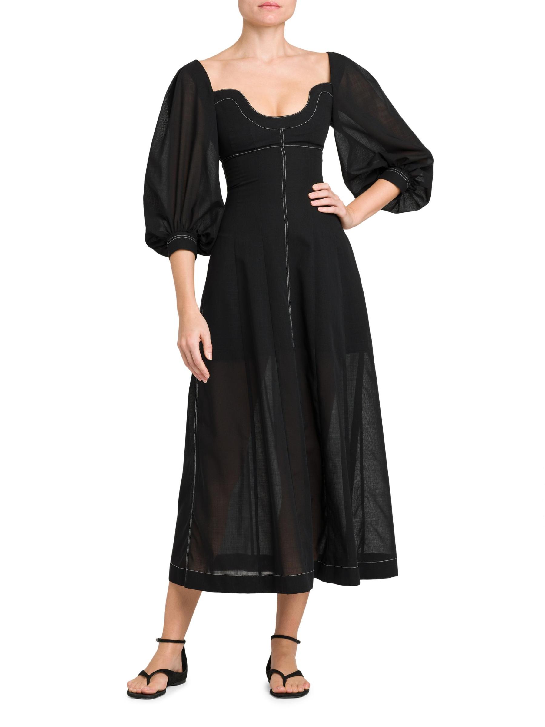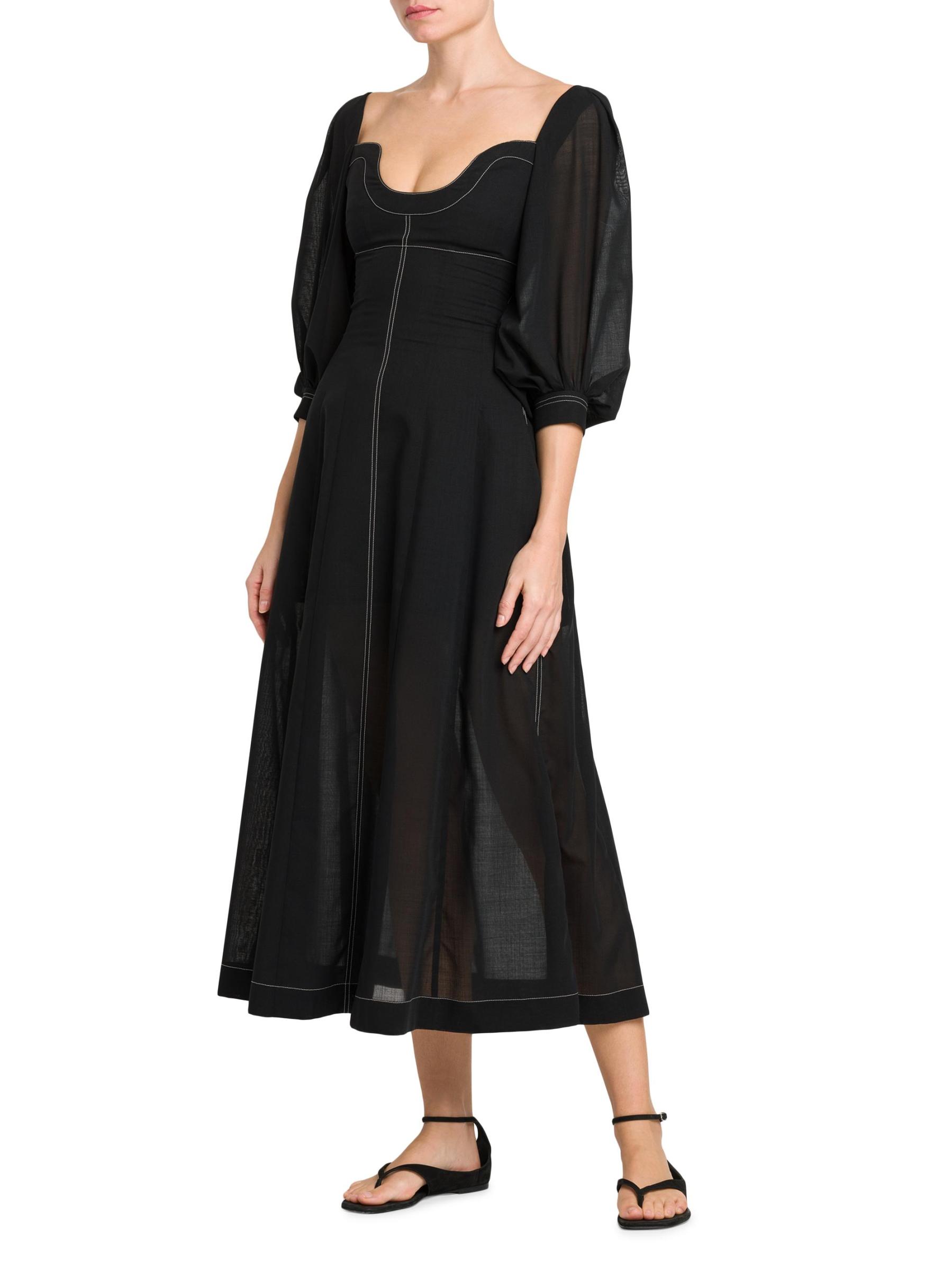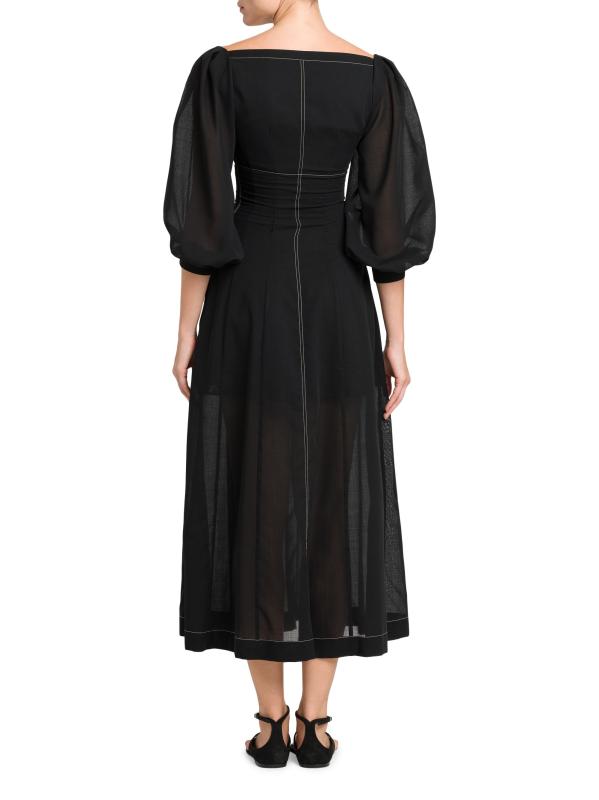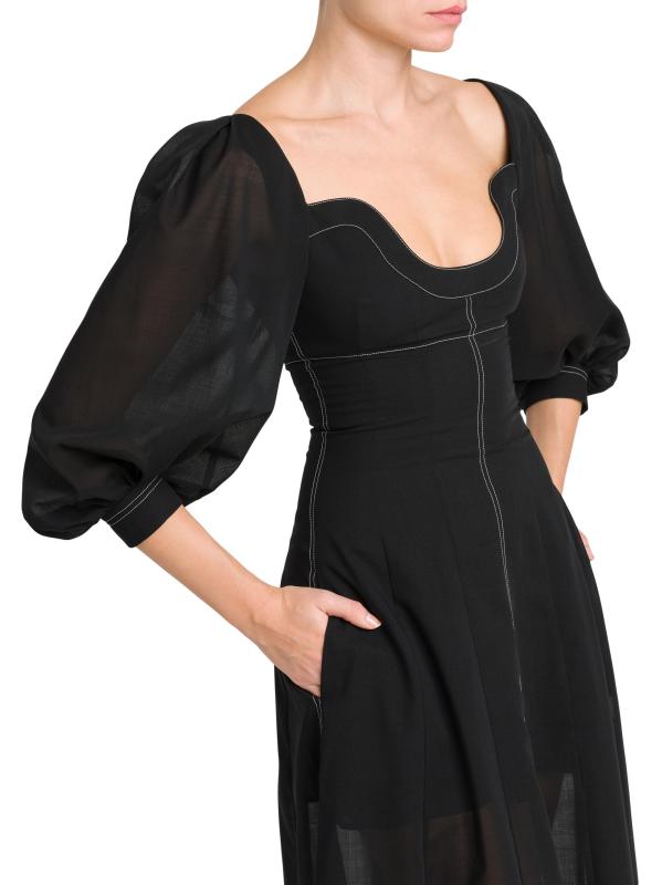 Contrast stitching defines the silhouette of Philosophy di Lorenzo Serafini's maxi dress. Crafted of airy wool voile, this piece is designed with a bustier-style bodice and bishop sleeves.