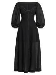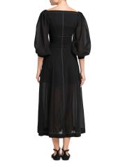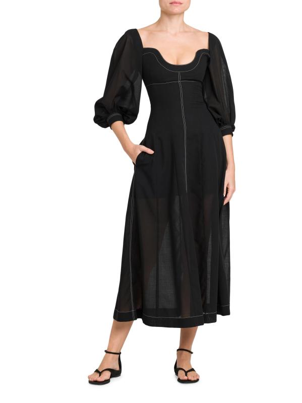 Topstitched Puff-Sleeve Bustier Maxi Dress