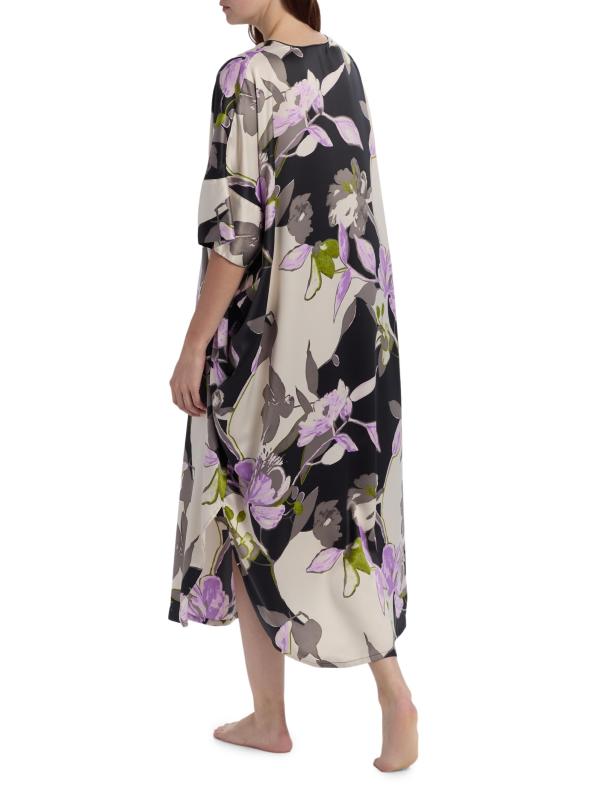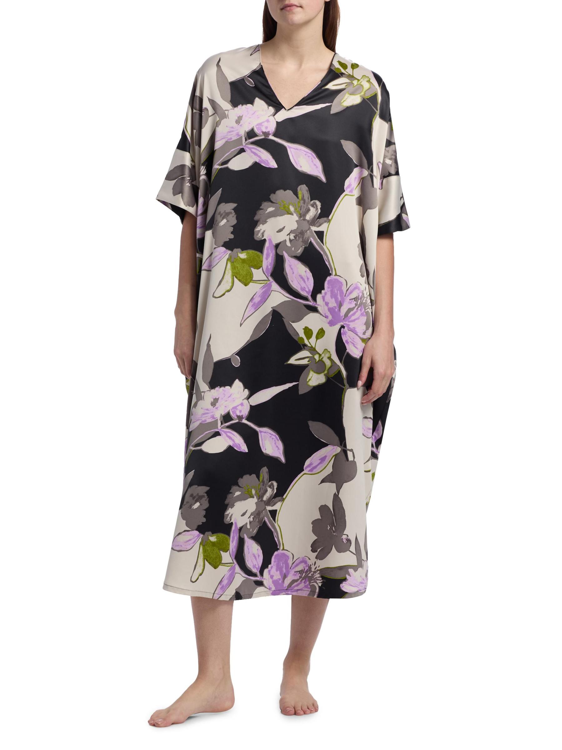 From the Tsubaki Collection. Crafted of charmeuse, Natori's midi-dress flaunts a bold floral print and offers an oversized fit.V-neck Short sleeves Side slip pockets Pulls over 100% polyester Machine wash Imported