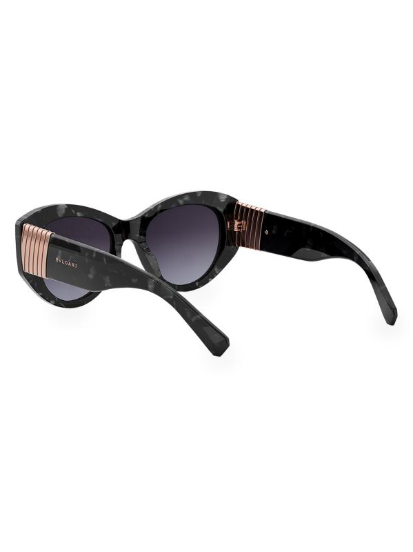 From the Tubogas Collection. These bold sunglasses from BVLGARI are designed with an oval silhouette, gradient UV-protective lenses, and an under-laquer metal logo at the temples.