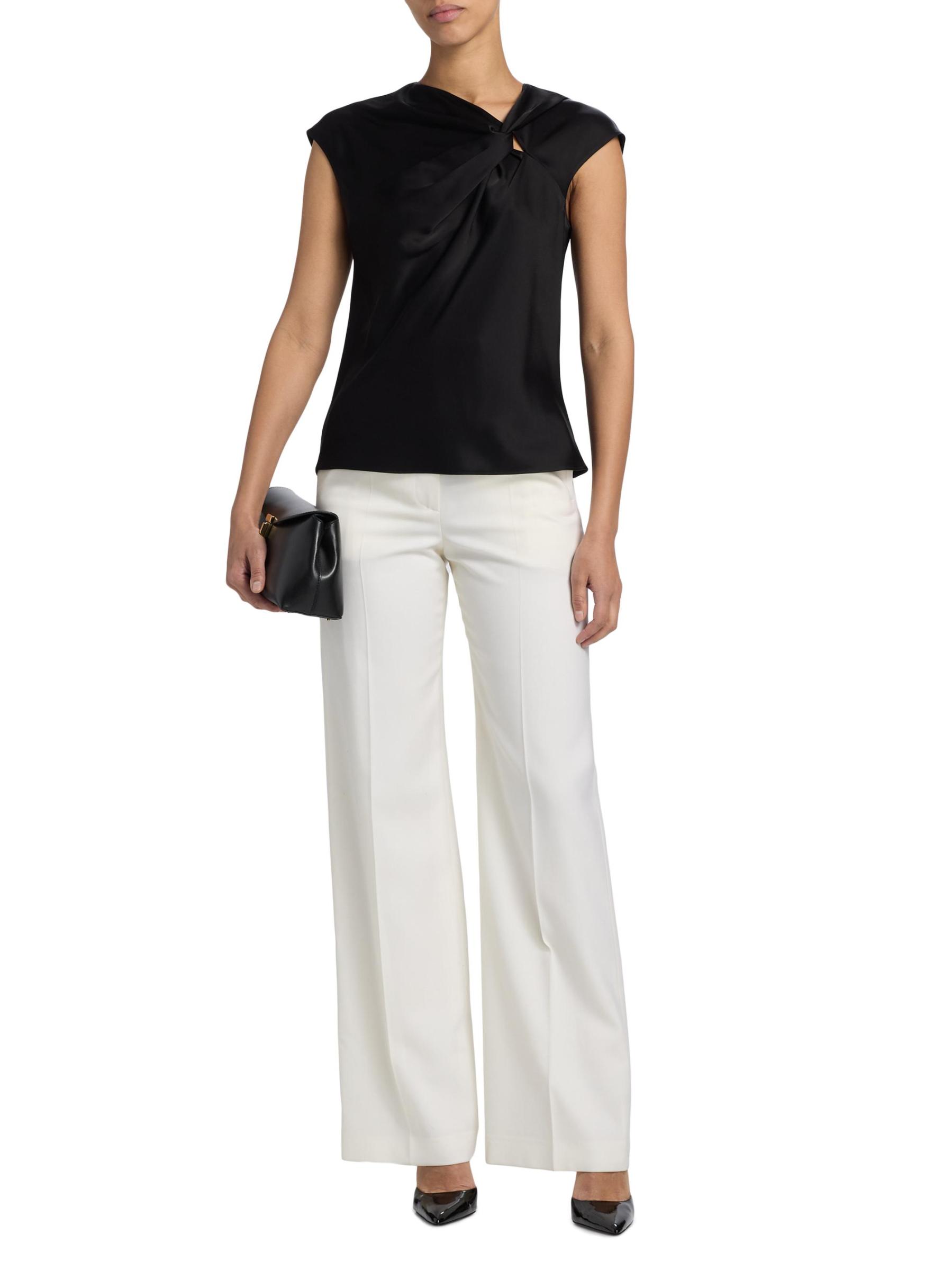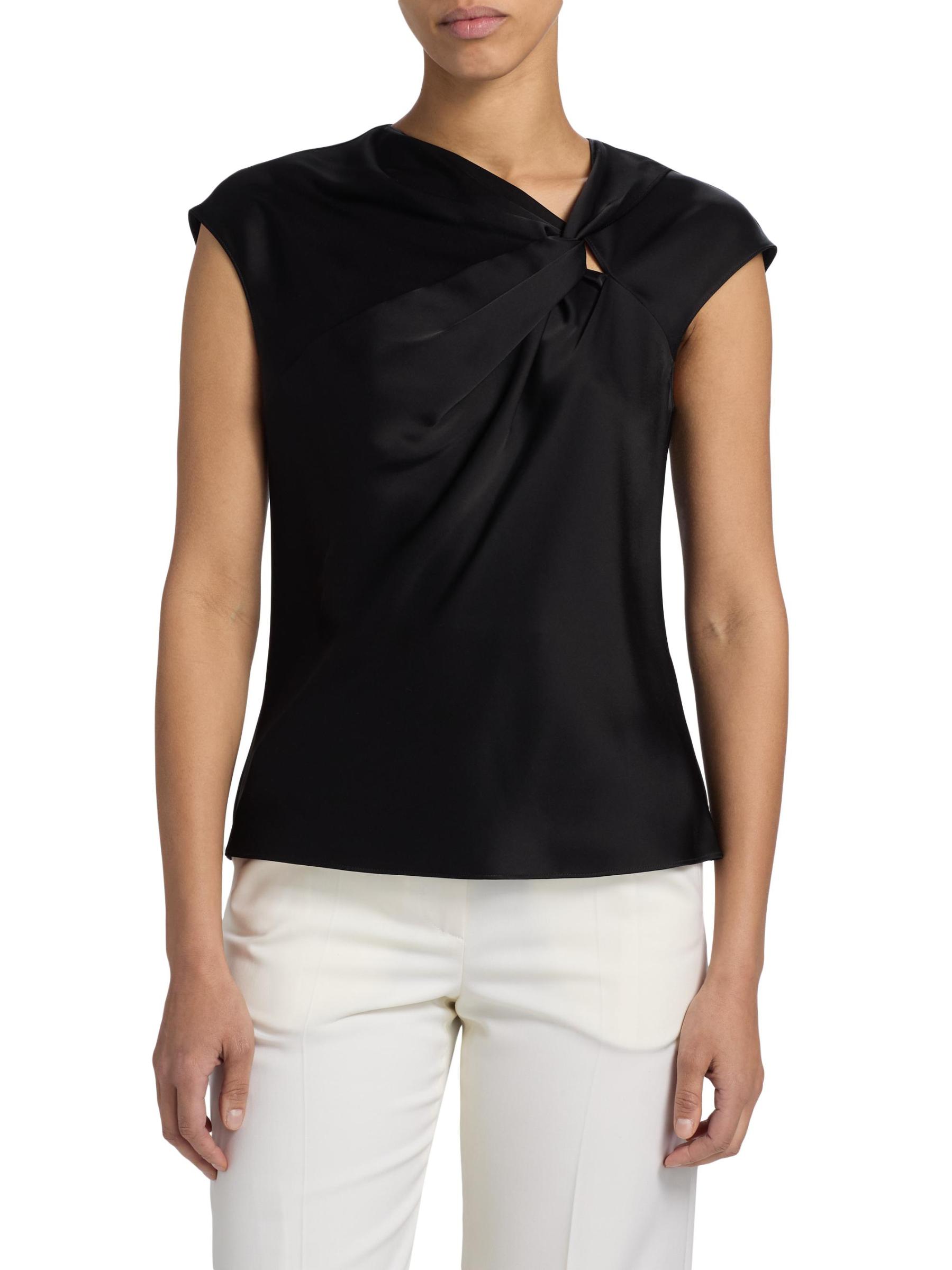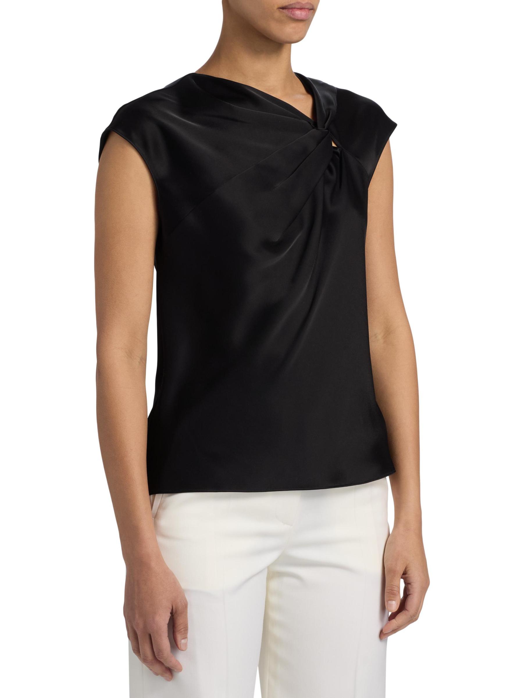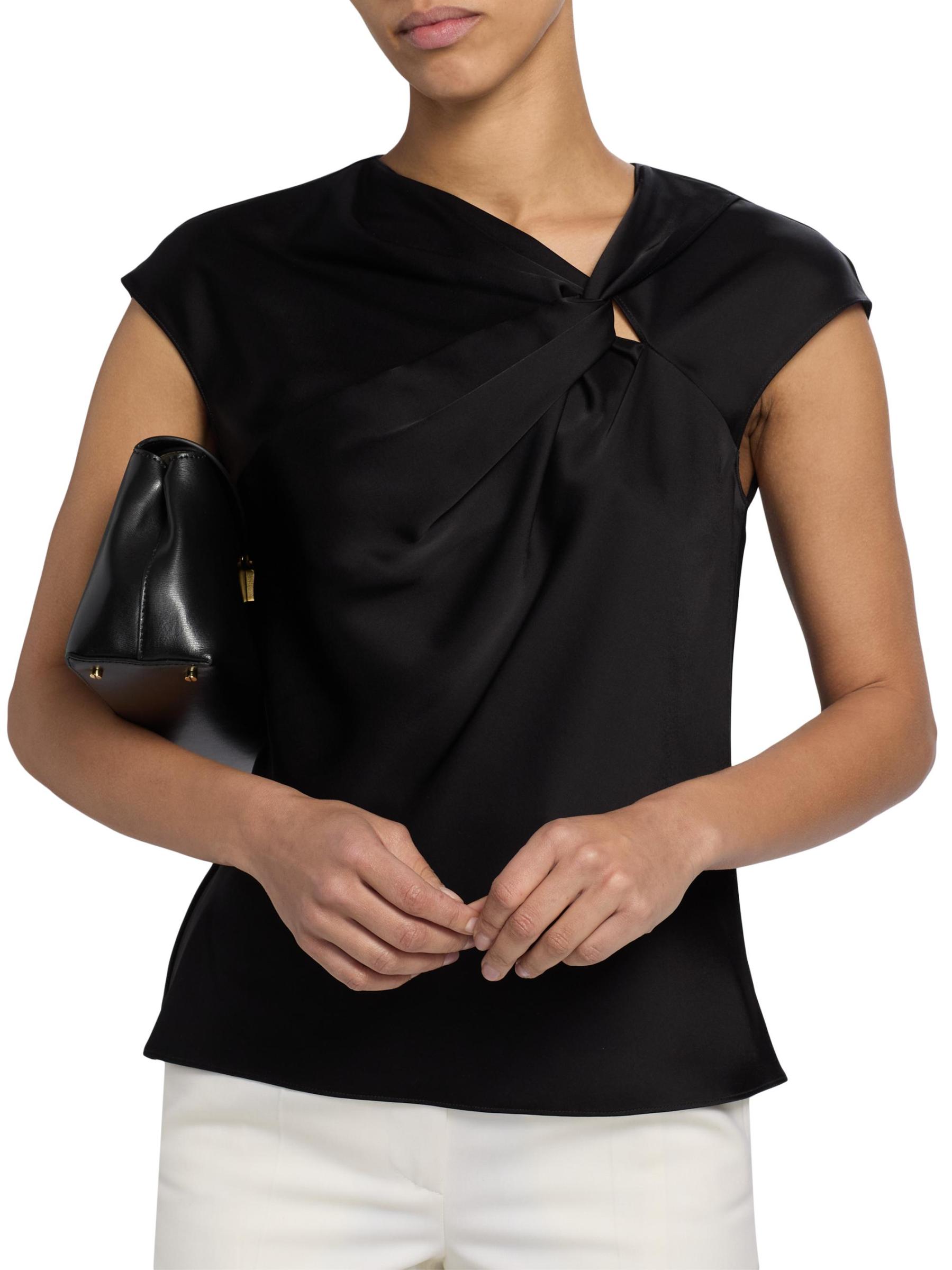 This sleeveless top from Theory features a unique twisted design at the front and a button keyhole closure at the back.