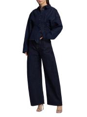 A.W.A.K.E. Mode's denim shirt is styled with seam detailing for a cinched waist and a twisted back. Curved blouson long sleeves complete the look.Point collar Long sleeves Snap front closure 100% Cotton Dry clean Imported