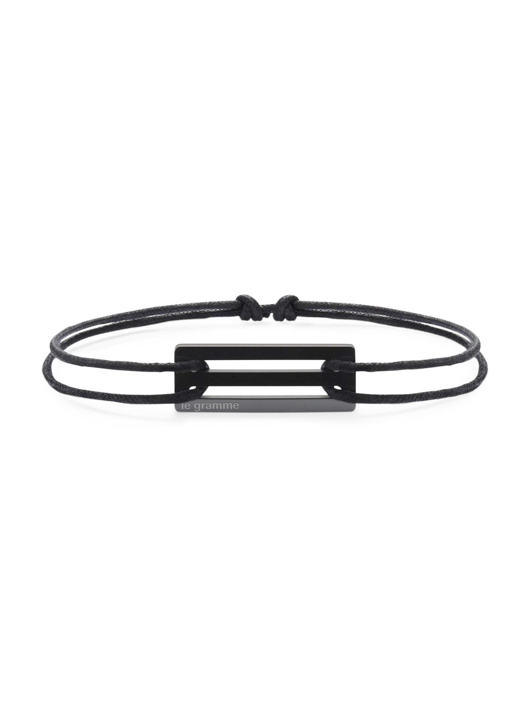 Cord bracelet with a ceramic accent with logo engraving.Fabric cord Black ceramic Made in France