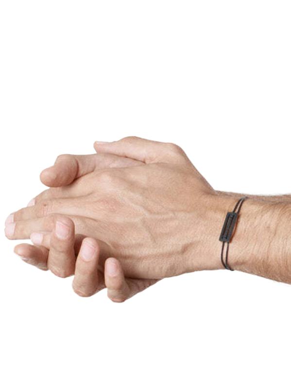 Cord bracelet with a ceramic accent with logo engraving.
