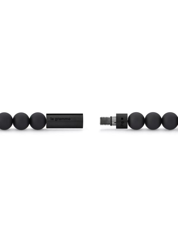 Drawing inspiration from architecture and design, Le Gramme, a luxury men's jewelry brand, crafts distinctive pieces such as the 31G brushed black ceramic bracelet with five sterling silver beads, with each piece named after its weight.Black ceramic Sterling silver Titanium Screw clasp Made in France