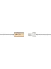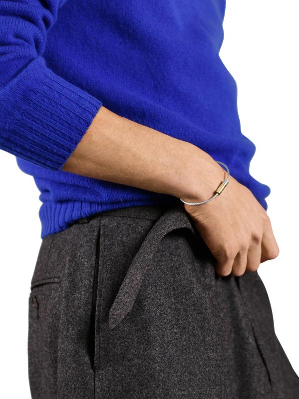 Cable-style bracelet with a screw clasp and engraved logo detail.