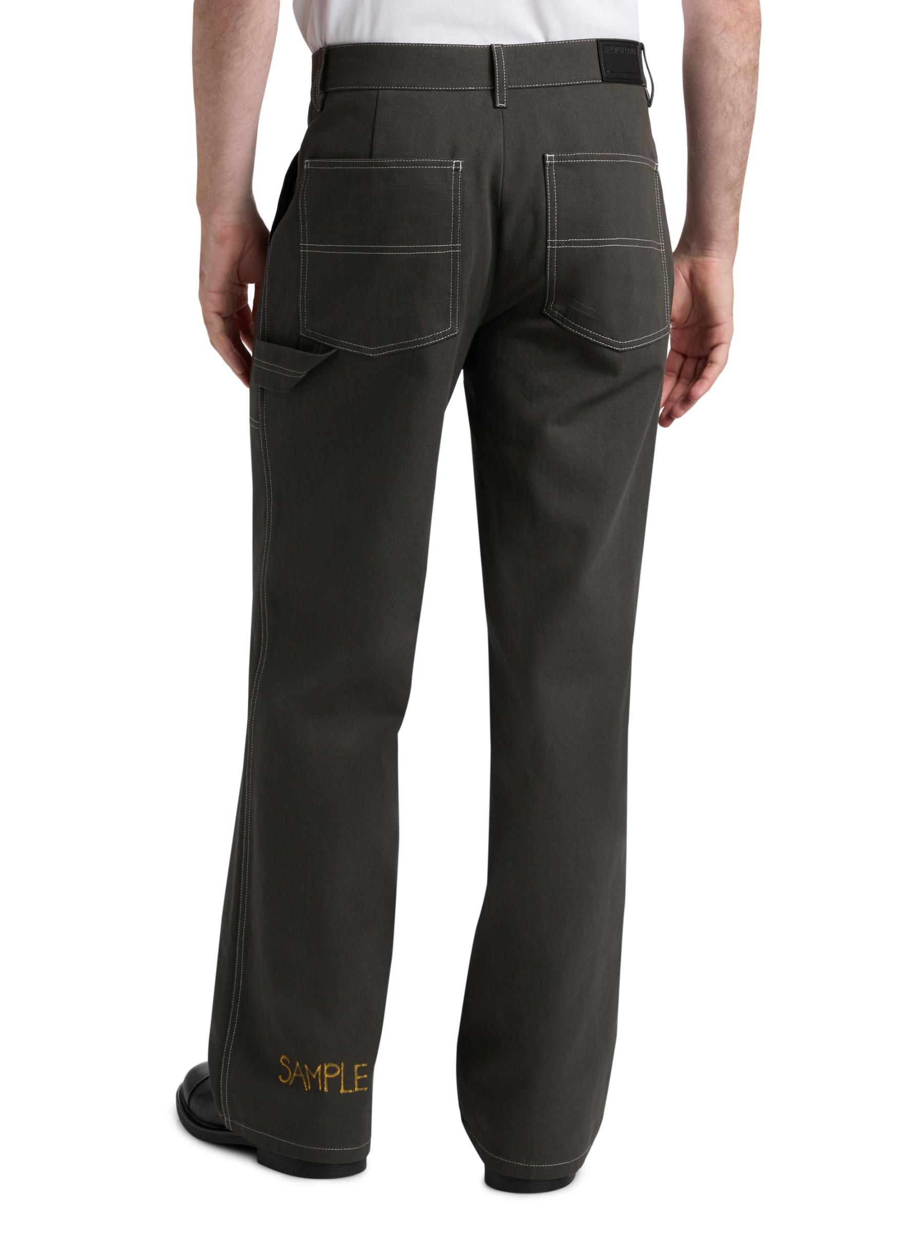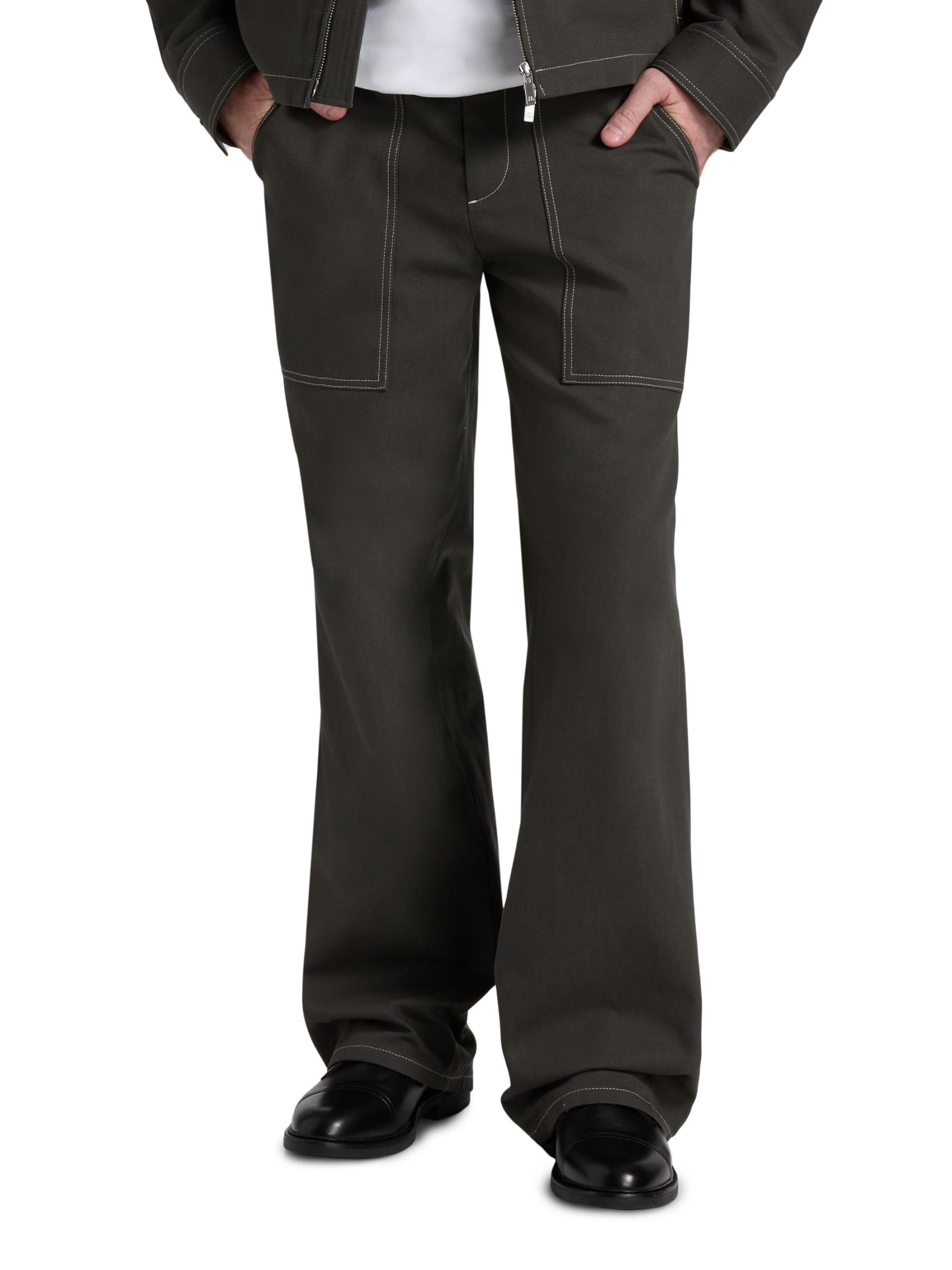 These Helmut Lang utility pants are crafted of dense cotton with contrast top-stitched detailing. They are cut for a relaxed fit with various patch pockets for added comfort.Side slant patch pockets Back patch pockets Zip fly, button closure 100% Cotton Dry clean Imported