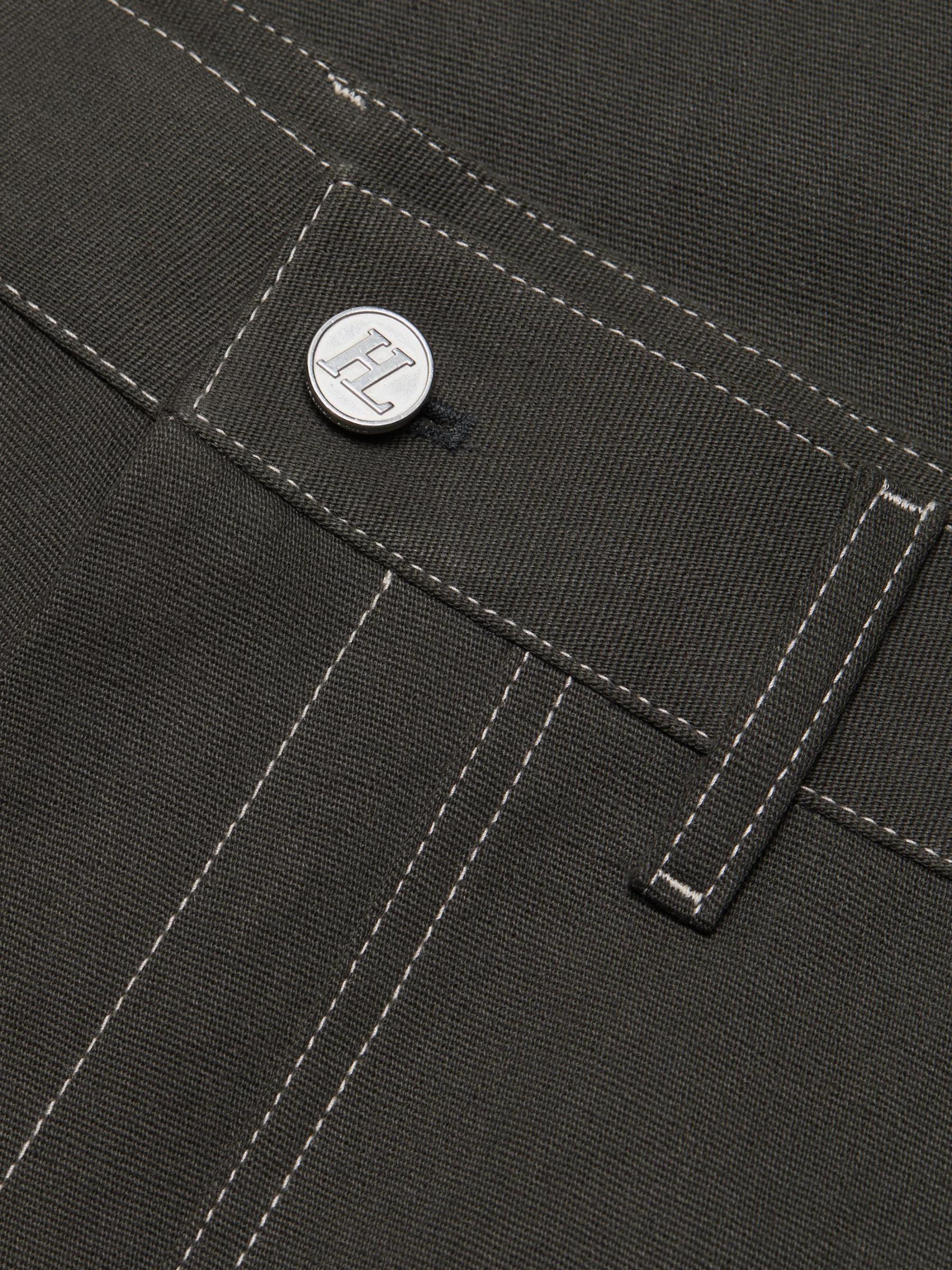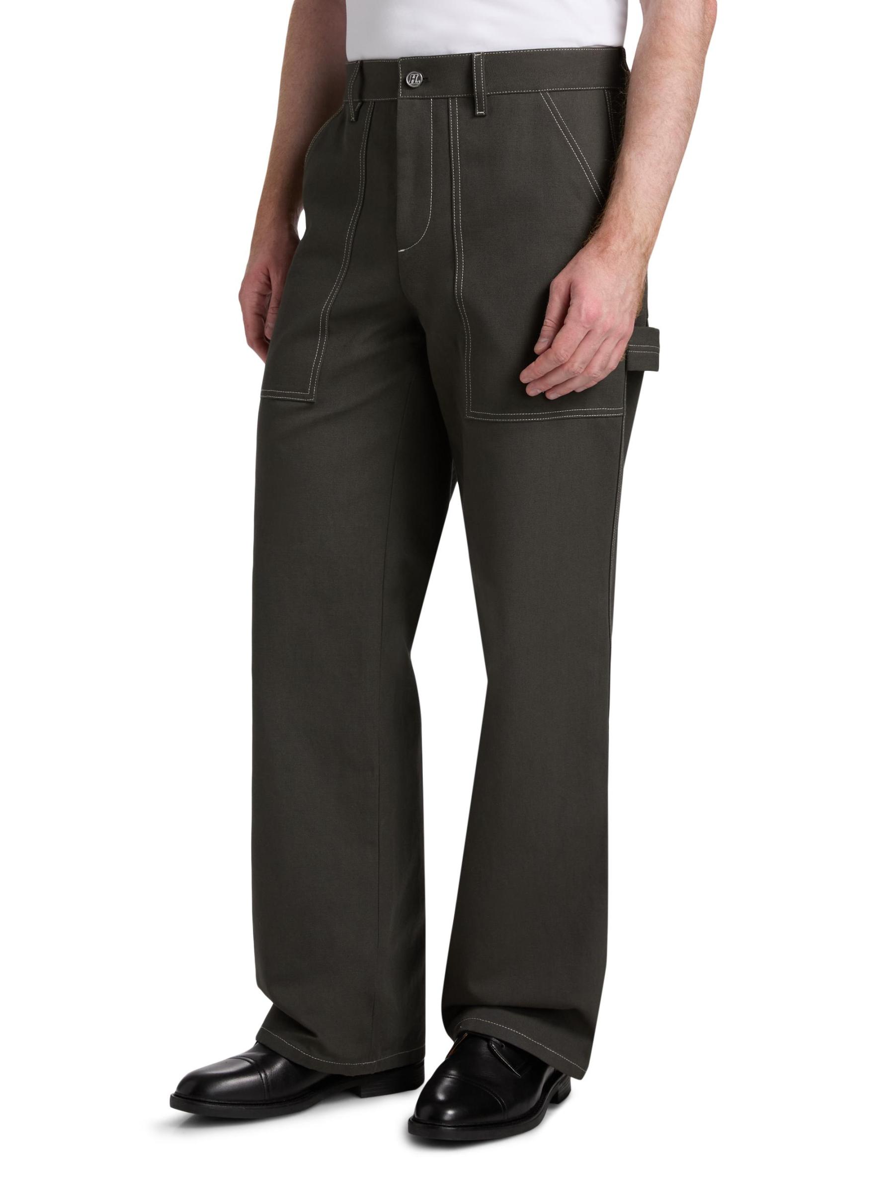 These Helmut Lang utility pants are crafted of dense cotton with contrast top-stitched detailing. They are cut for a relaxed fit with various patch pockets for added comfort.