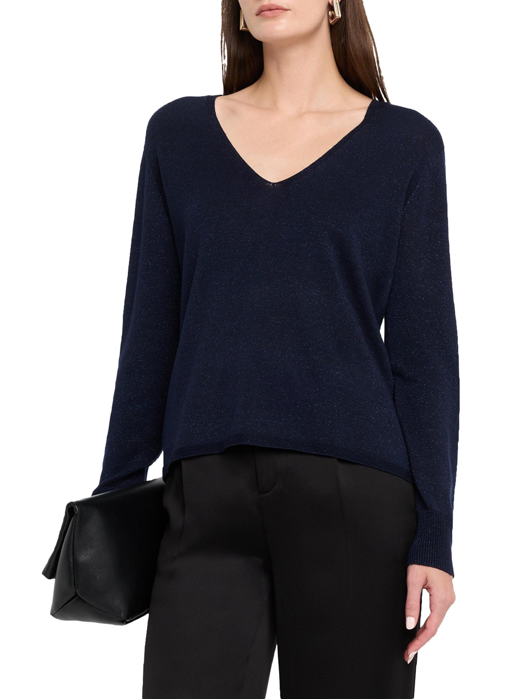 Knit to a shimmering finish, Kobi Halperin’s wool-blend V-neck Vinny sweater has a relaxed silhouette.