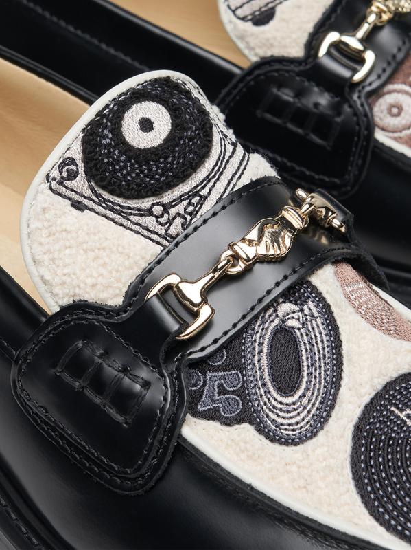 Vinyl Embroidered Leather Loafers