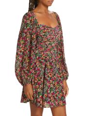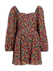 Animated in a blooming floral print, the westside's Vivan dress flaunts a sweetheart neck complemented by a ruched bodice. This piece is framed with voluminous puffed sleeves and a flared skirt.
