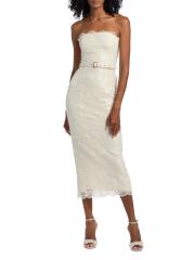 Vivian Strapless Belted Lace Midi-Dress